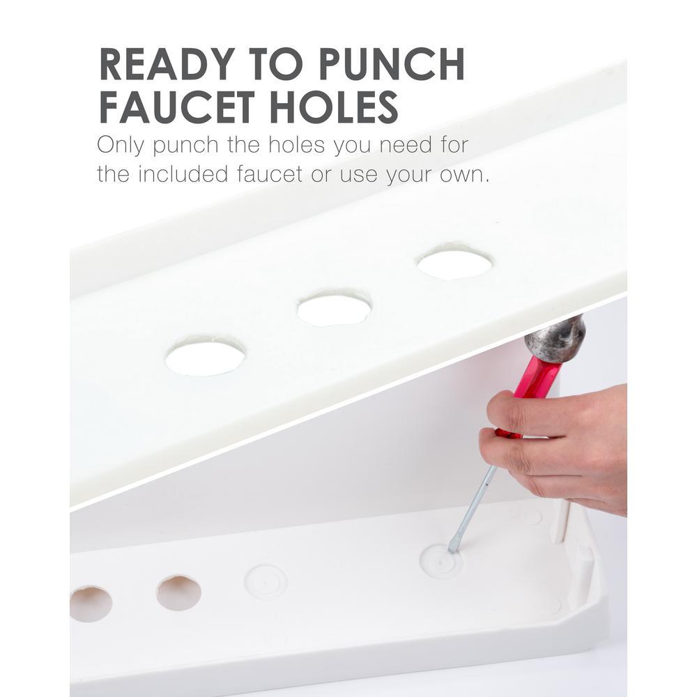 Multiple pilot holes allow for easy installation of your choice of other faucets and accessories, if desired