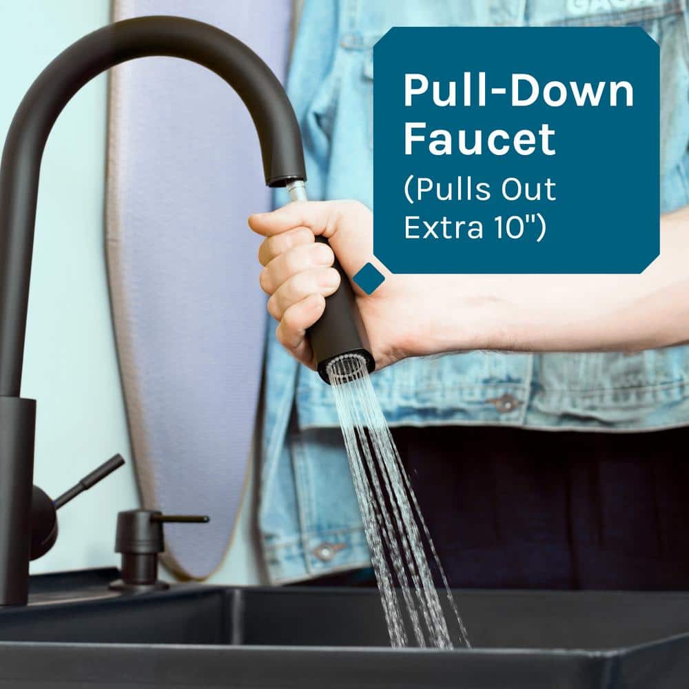 • Versatile Faucet: High-arc design with pull-down functionality for maximum reach and convenience.