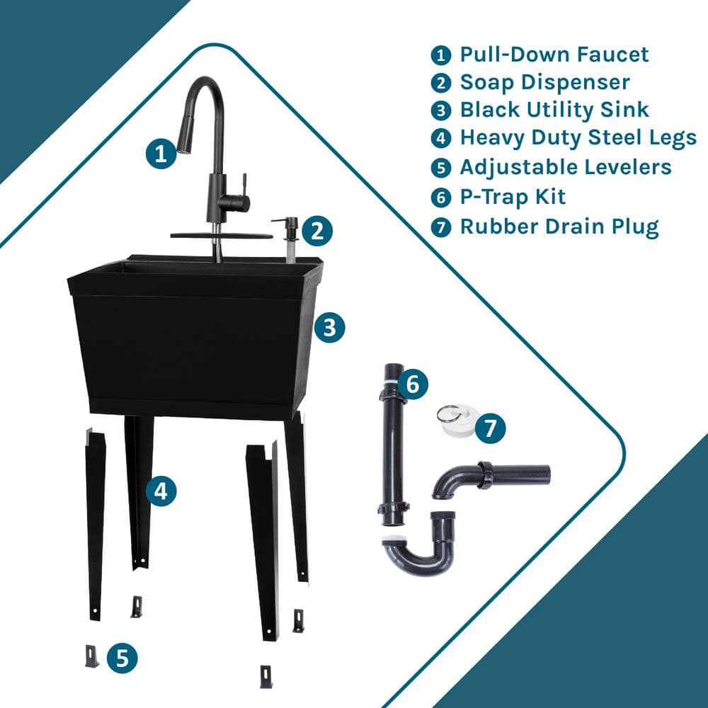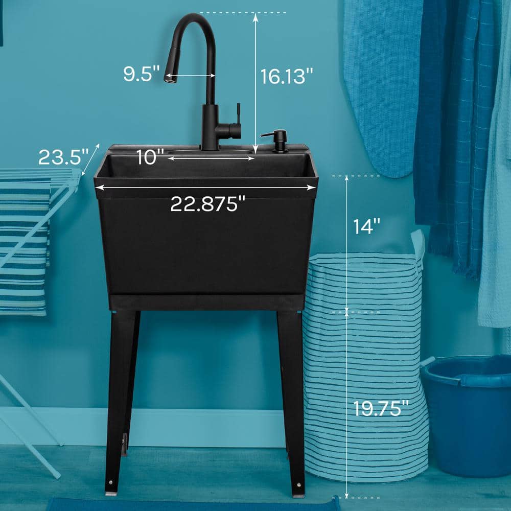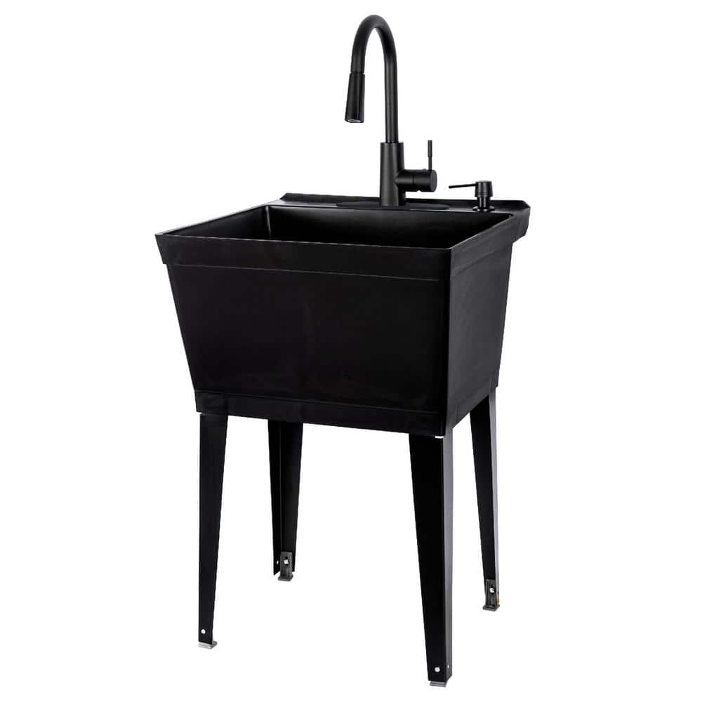 TEHILA 19 Gallon Black Utility Sink with High Arc Faucet & Soap Dispenser