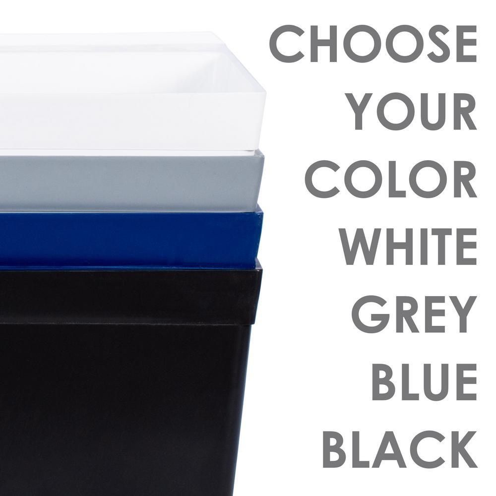 Assembled tub measures 23.25 in. L x 22.875 in. W x 33.75 in. H
