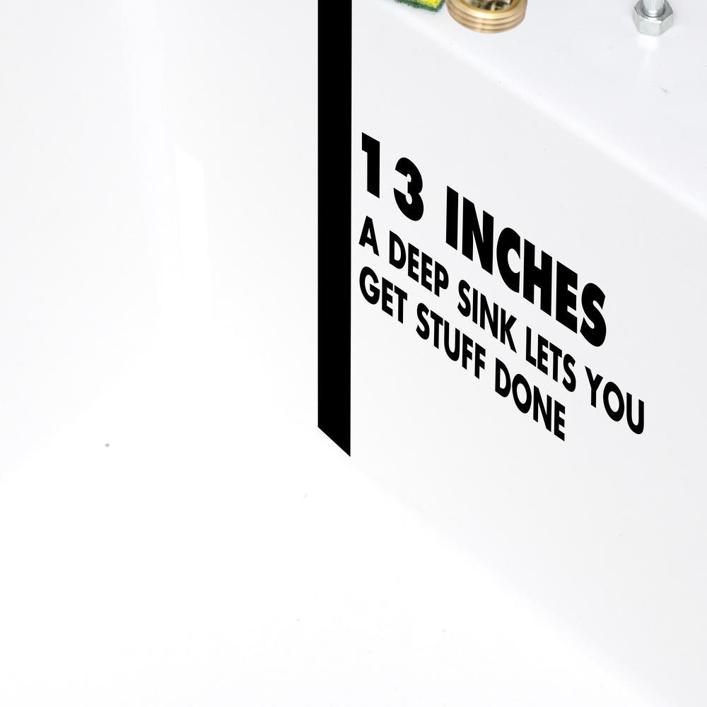 3.5 in. back deck with pitched back lip to place accessories and catch splashing