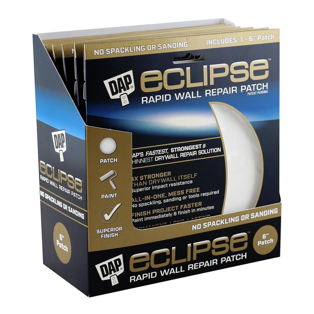 DAP Eclipse Rapid Wall Repair Patch is a new, revolutionary product solution for repairing drywall damage. No more waiting for spackling to dry or messy sanding. DAP Eclipse allows you to patch drywall damage and paint immediately, allowing you to finish your project faster. This all-in-1, mess free solution not only provides a permanent, long-lasting repair but also superior impact resistance for areas that may see reoccurring impact, such as behind a door.