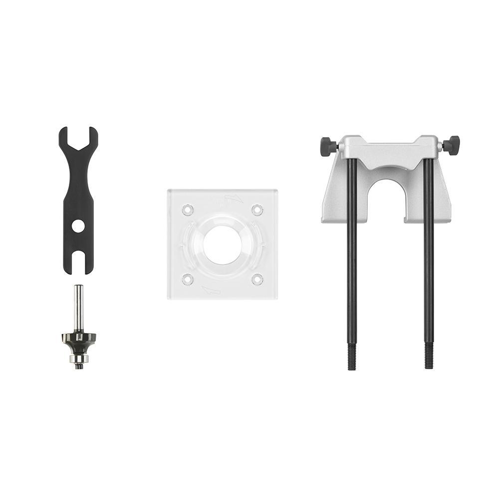 Brushless 1/4 in. Compact Router: Includes: (1) R86044B Brushless 1/4 in. Compact Router, (1) edge guide, (1) 1/4 in. bit, round and square bases, (1) wrench, (1) contractor's bag, and operator's manual
