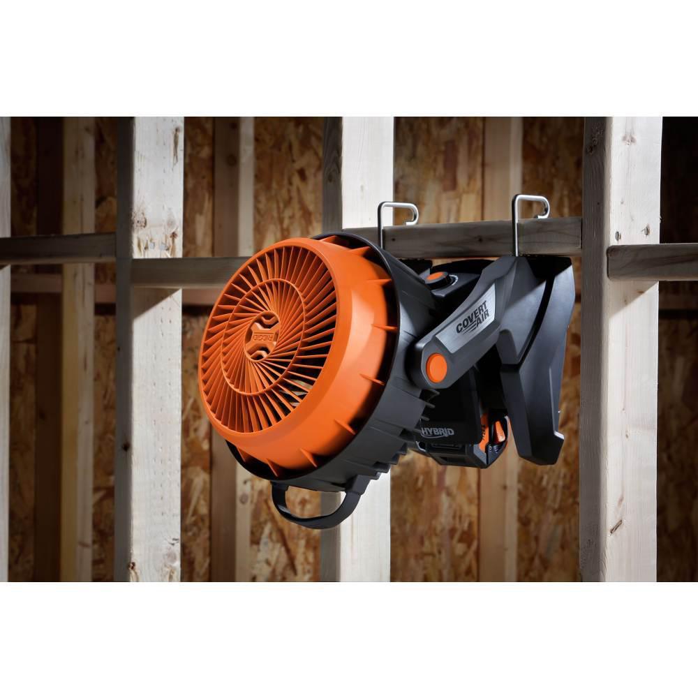 • Hybrid Fan: Covert Air Technology makes the RIDGID 18-Volt Hybrid Fan the quietest and most powerful fan in the industry