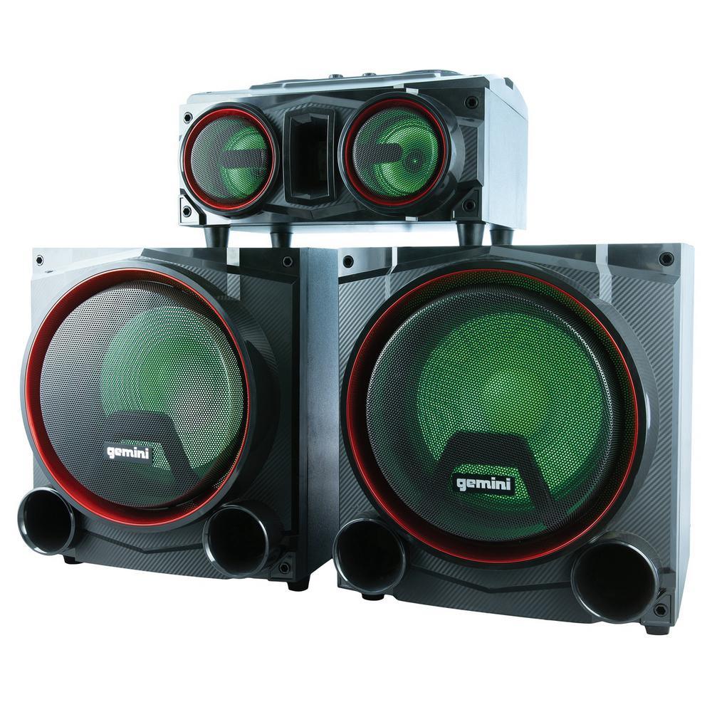 Meet the Gemini GSYS-4000 Flagship Home Party System. The GSYS line of speakers brings your night to life with deep powerful bass and club-like high-definition LED lights. The lighting ranges from a bright pure white to a multicolored rainbow effect. This system features 2 in. x 12 in. woofers and 2 in. x 4 in. drivers that club-level sound quality. It features a microphone input with separate volume control, bass and treble EQ adjustments and a range of input options including Bluetooth, FM radio and an integrated media player to play from USB and SD Cards. If you’re looking for a high-quality product with great sound that brings your party to life, then the Gemini GSYS-4000 is the system for you.