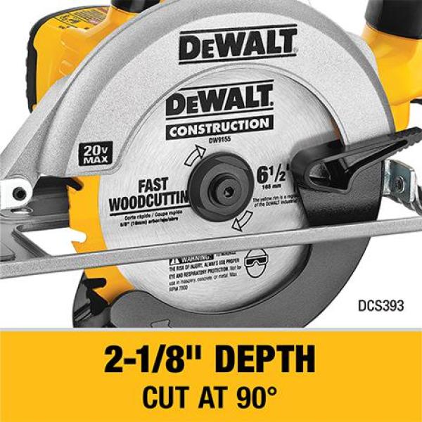 - DCS393 cordless circular saw with 6-1/2 in. carbide blade can cut 2 ft. x 4 ft. at a 45° angle in a single pass