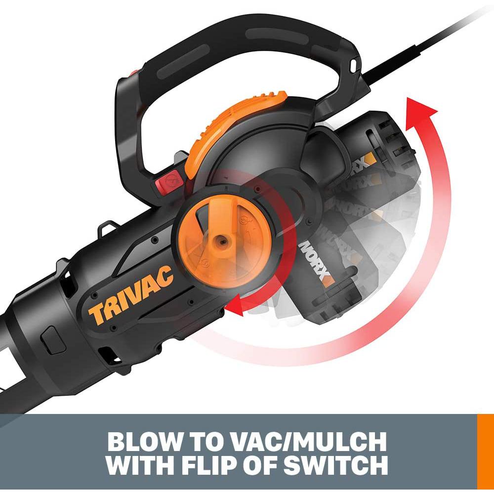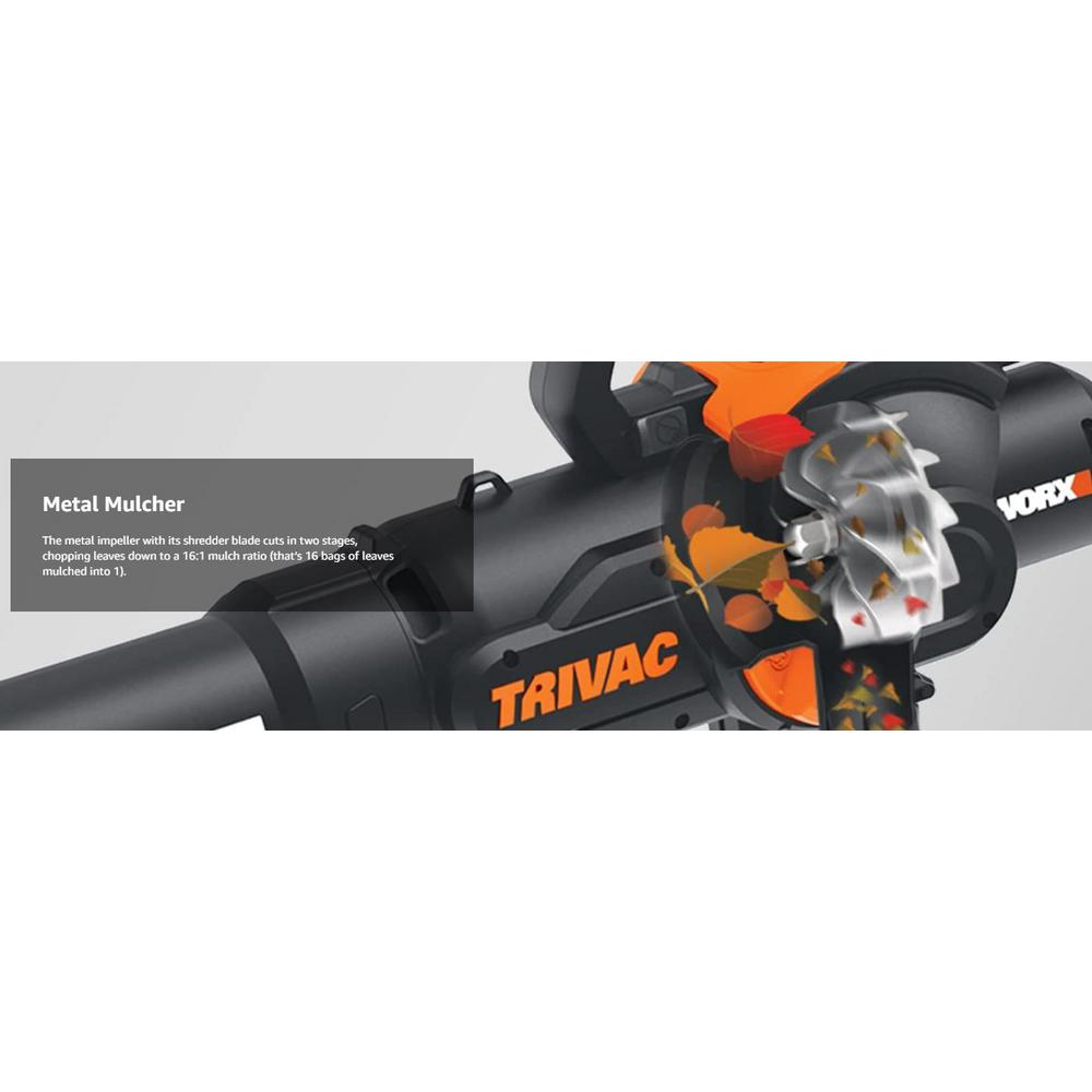 Worx TRIVAC 2.0 70 MPH 600 CFM Electric 12 Amp 3-in-1 Blower, Mulcher, Yard and Lawn Vacuum with Metal Impeller