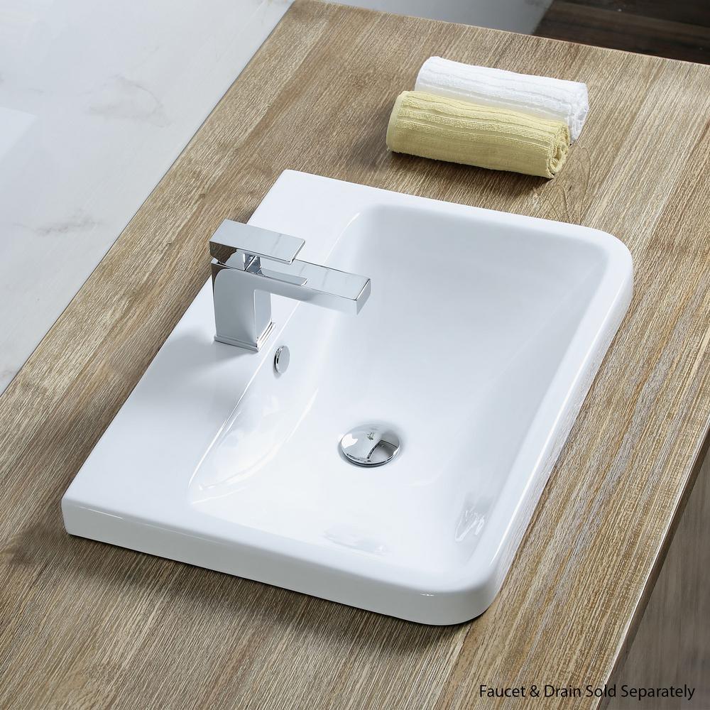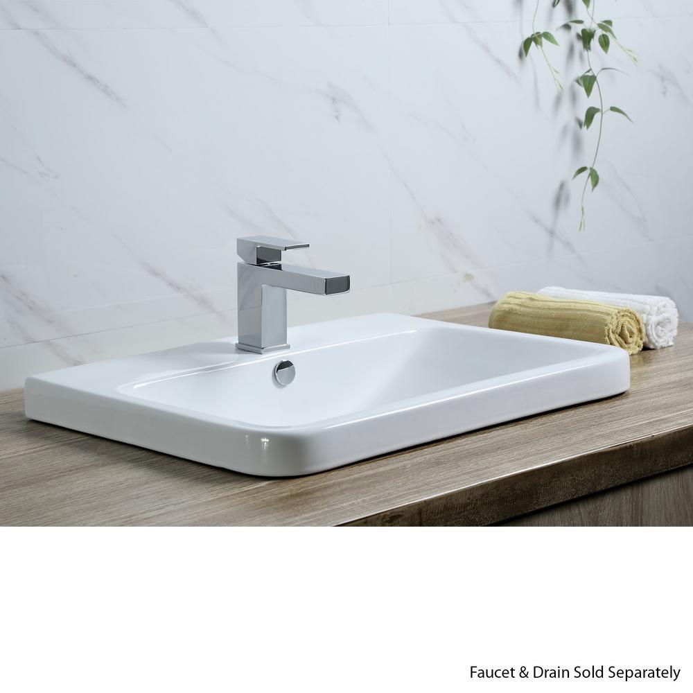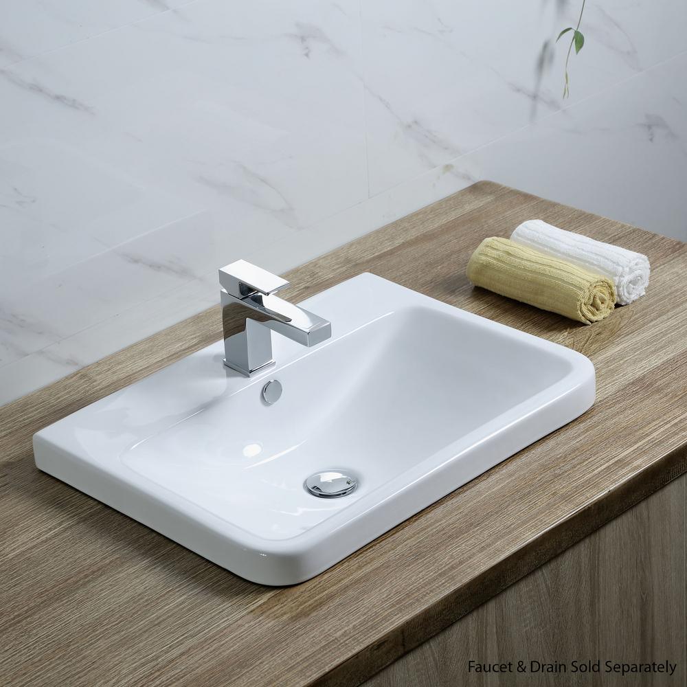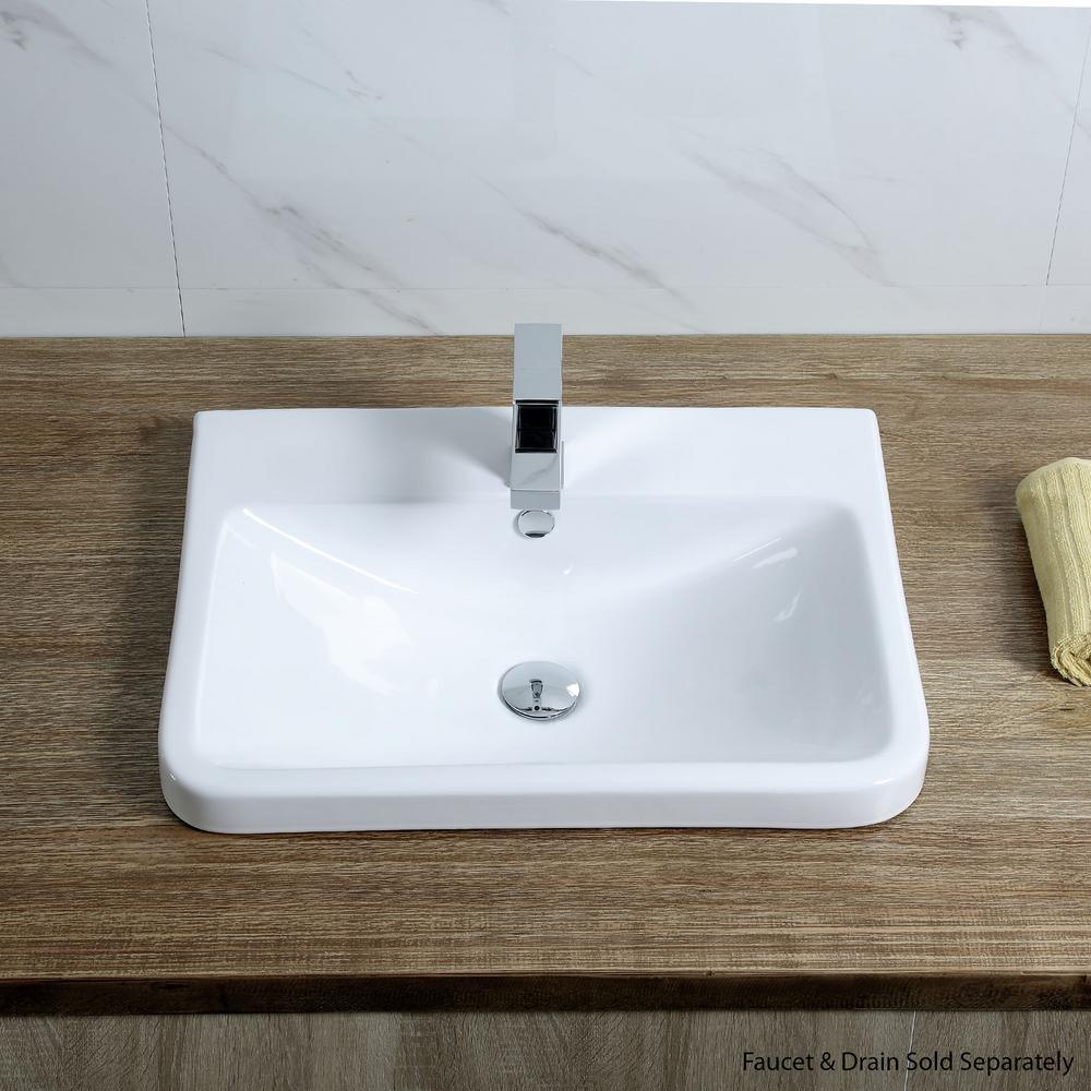 Rectangular 24 in. Drop-In Ceramic Bathroom Sink in White