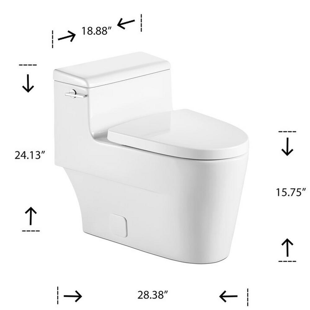 - White ceramic toilet, comfortable size: 28.74 in. x 15.35 in. x 27.17 in.
