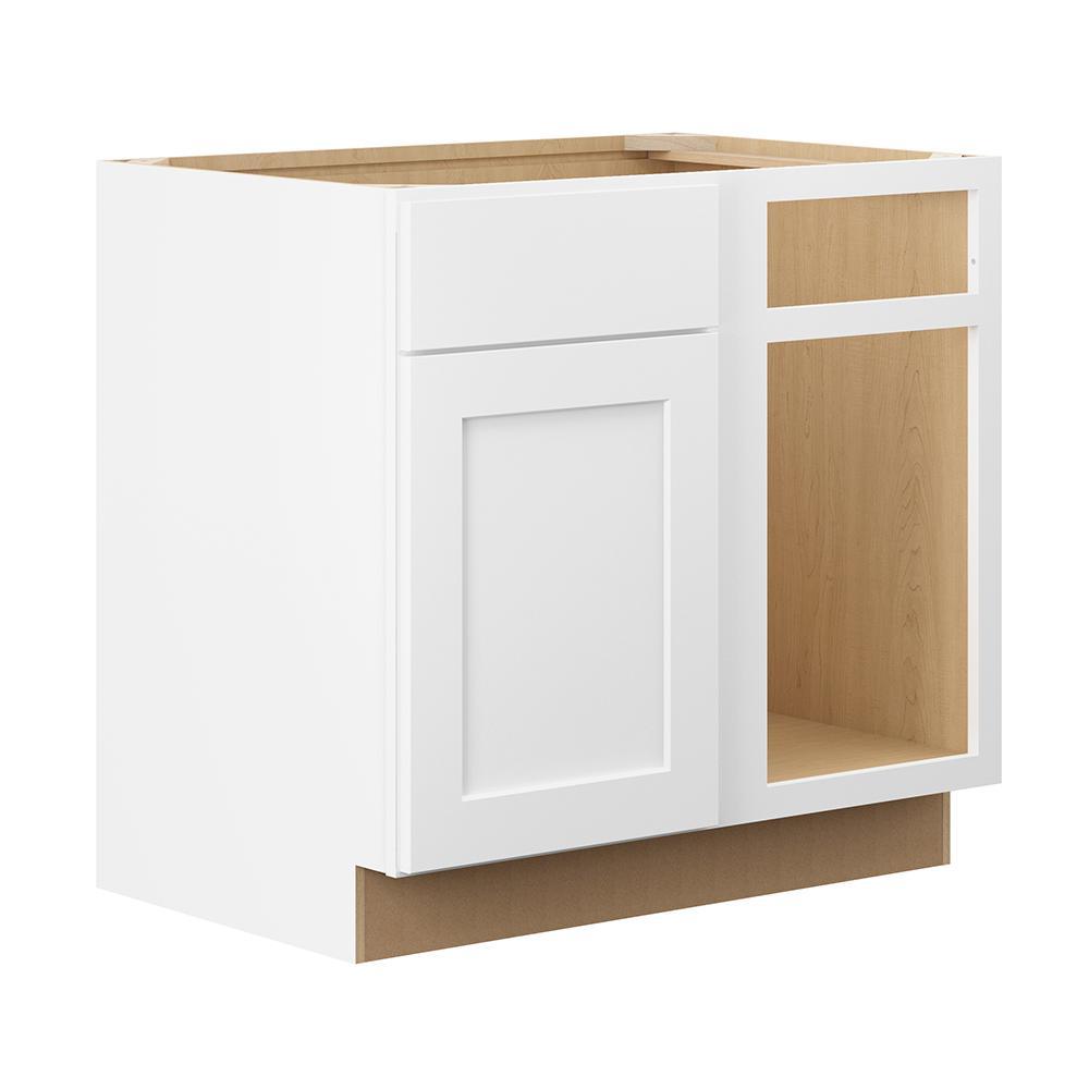 Shaker Ready To Assemble 39 in. W x 34.5 in. H x 24 in. D Plywood Blind Base Cabinet in Denver White Painted Finish