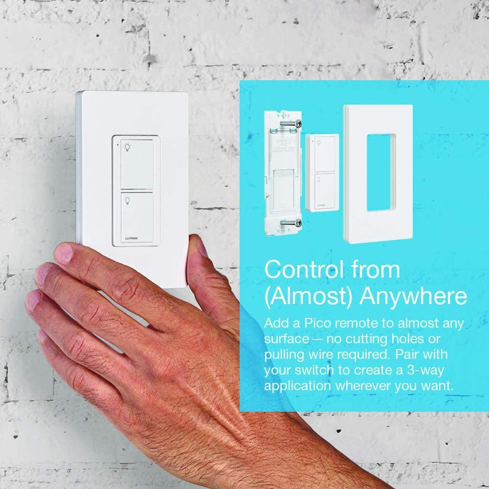 • SMART 3-WAY CONTROL: Place remote over existing electrical box with included bracket or add a new point of control anywhere in the home, without cutting holes or pulling wire
