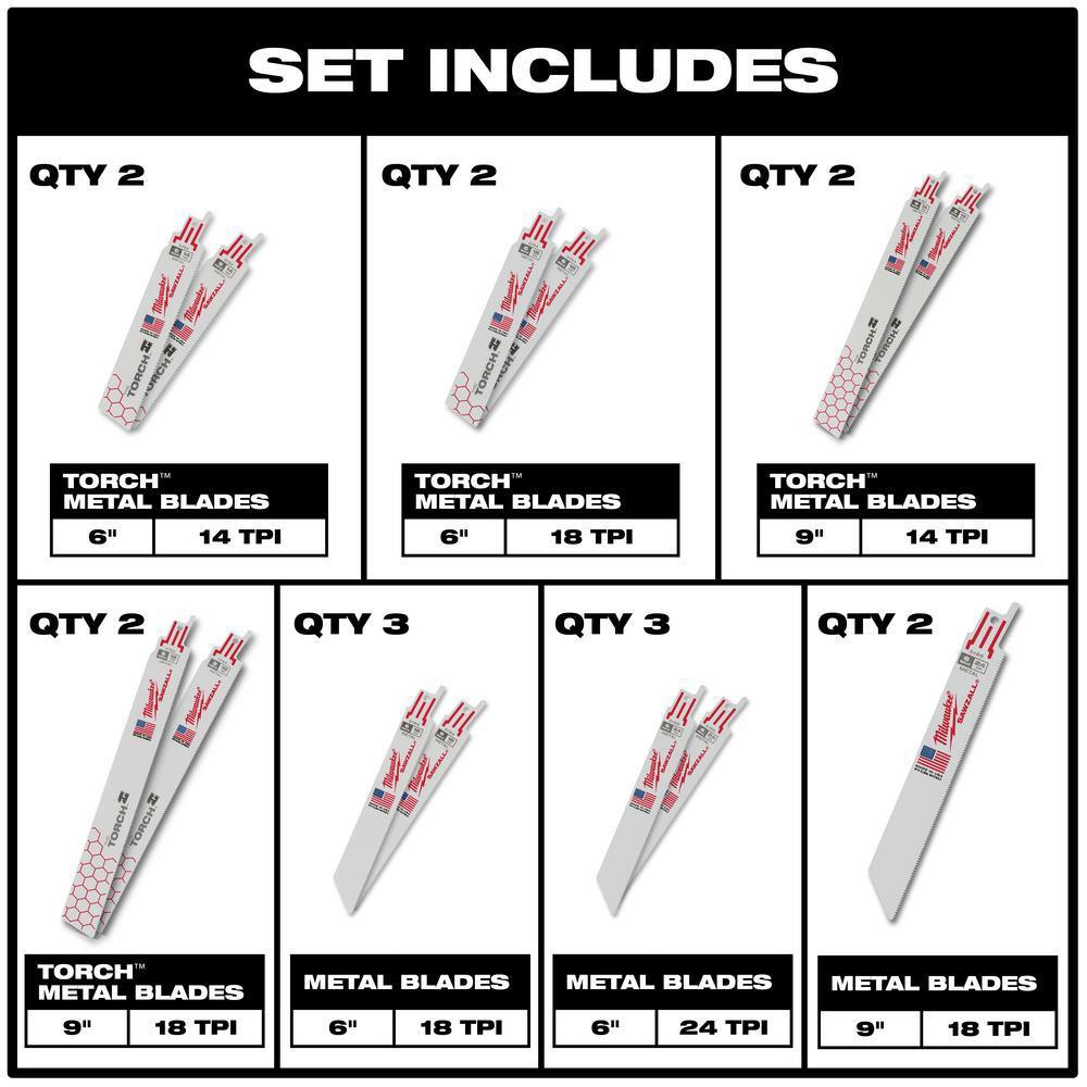 • Kit includes: one 49-22-1110 SAWZALL wood and metal cutting bi-metal reciprocating saw blade set (10-piece) and one 49-22-1216 SAWZALL metal cutting bi-metal reciprocating blade set (16-piece)