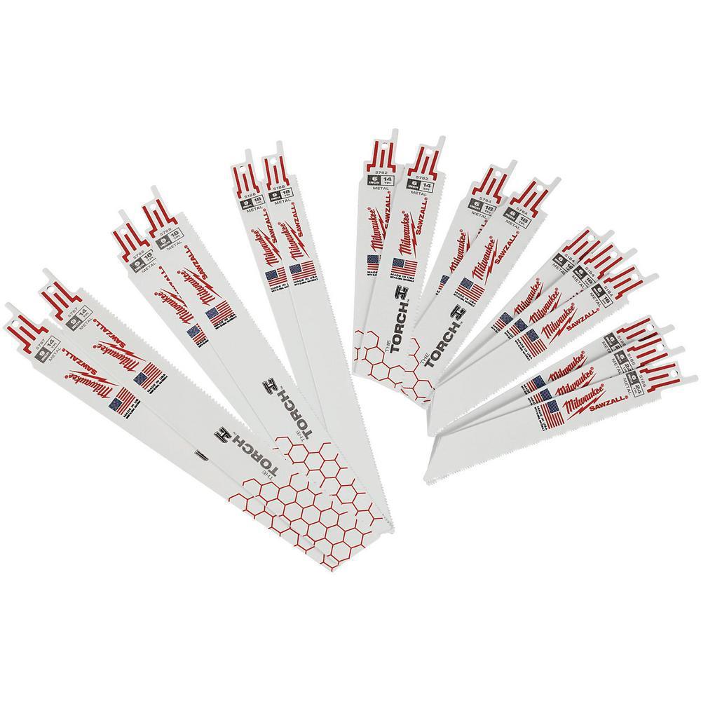 Get the ability to cut a variety of metal and wood applications with this 10-Piece SAWZALL Reciprocating Saw Blade Set from Milwaukee. The blades feature an optimized tooth design that provide a longer life than standard bi-metal blades. They come with a durable case for convenient, on-the-go blade storage. This set ensures you won't get stuck without the right blade. Set includes 1 SAWZALL Wood and Metal Cutting Bi-Metal Reciprocating Saw Blade Set (10-Piece) and 1 SAWZALL Metal Cutting Bi-Metal Reciprocating Blade Set (16-Piece).