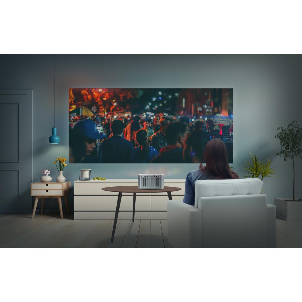 - Cinematic experience: the short-throw technology projects images up to 120 in. just a few meters away from the wall, 4 corners corrections, digital zoom, auto keystone and focus