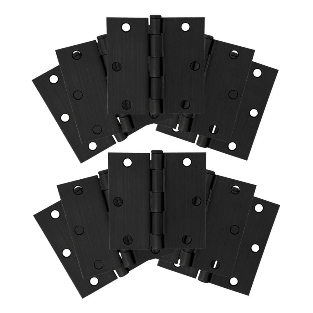 3-1/2 in. Square Corner Matte Black Door Hinge Value Pack (10 per Pack)