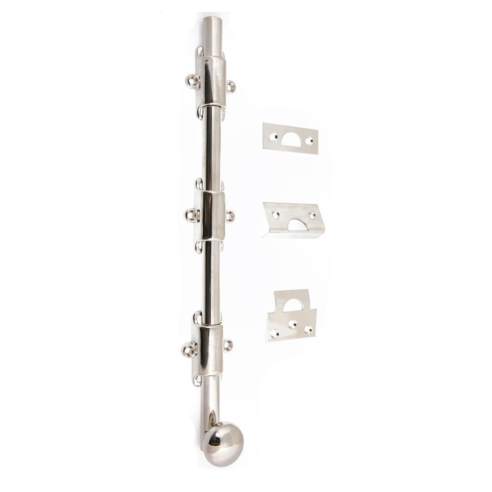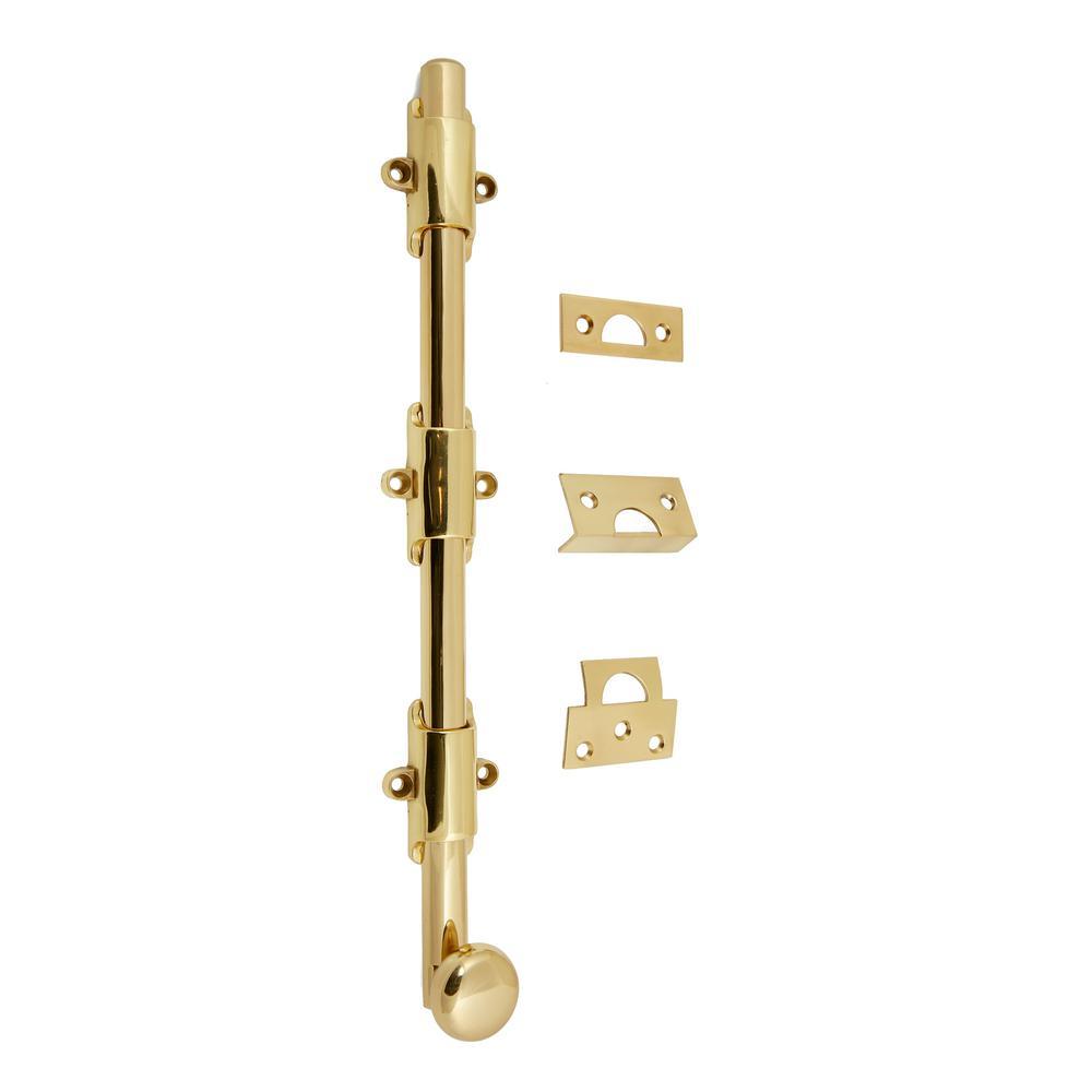 Heavy-Duty 12 in. Solid Brass Surface Bolt with Round Knob in Polished Brass