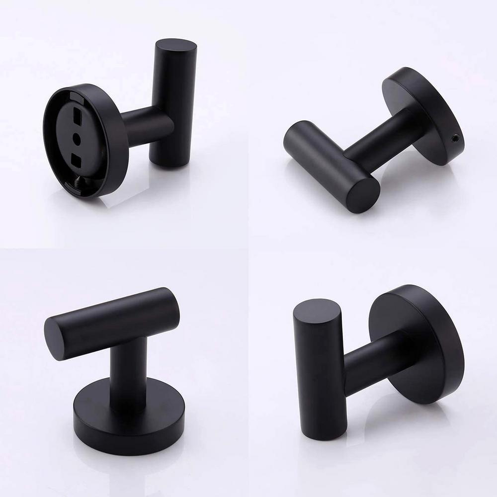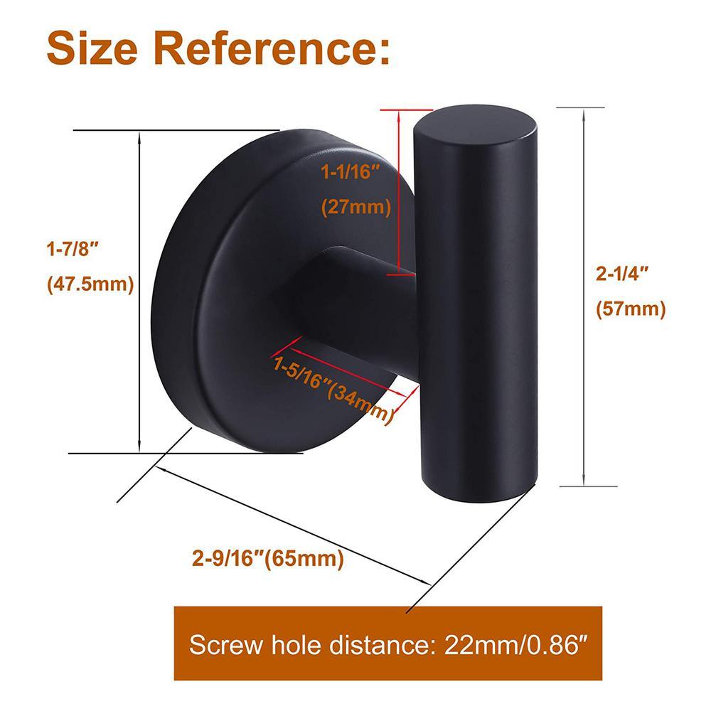 Round Bathroom Robe Hook and Towel Hook in Stainless Steel Matte Black (2-Pack)