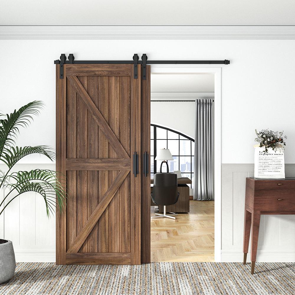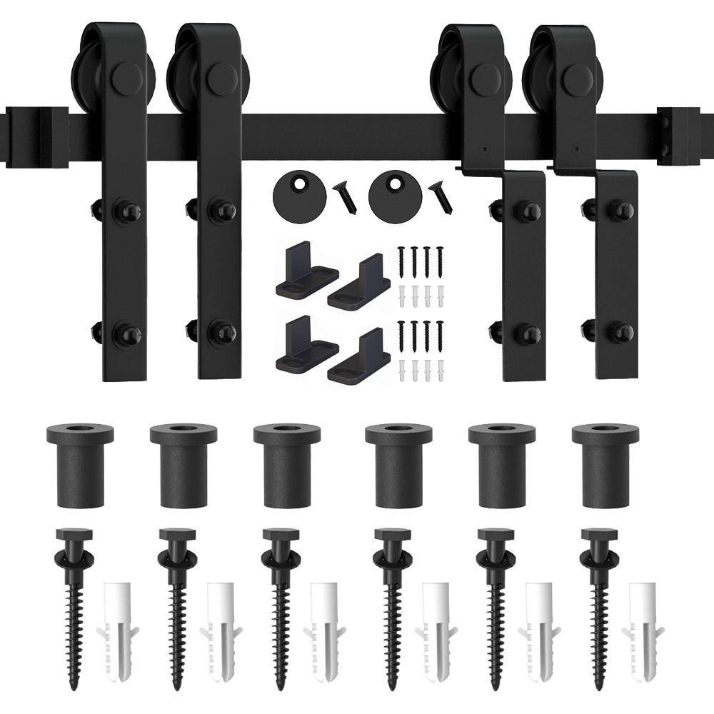 7.5 ft./90 in. Single Track Bypass Barn Door Hardware Double Doors Kit, Heavy-Duty Sliding 1-Track Antique Roller