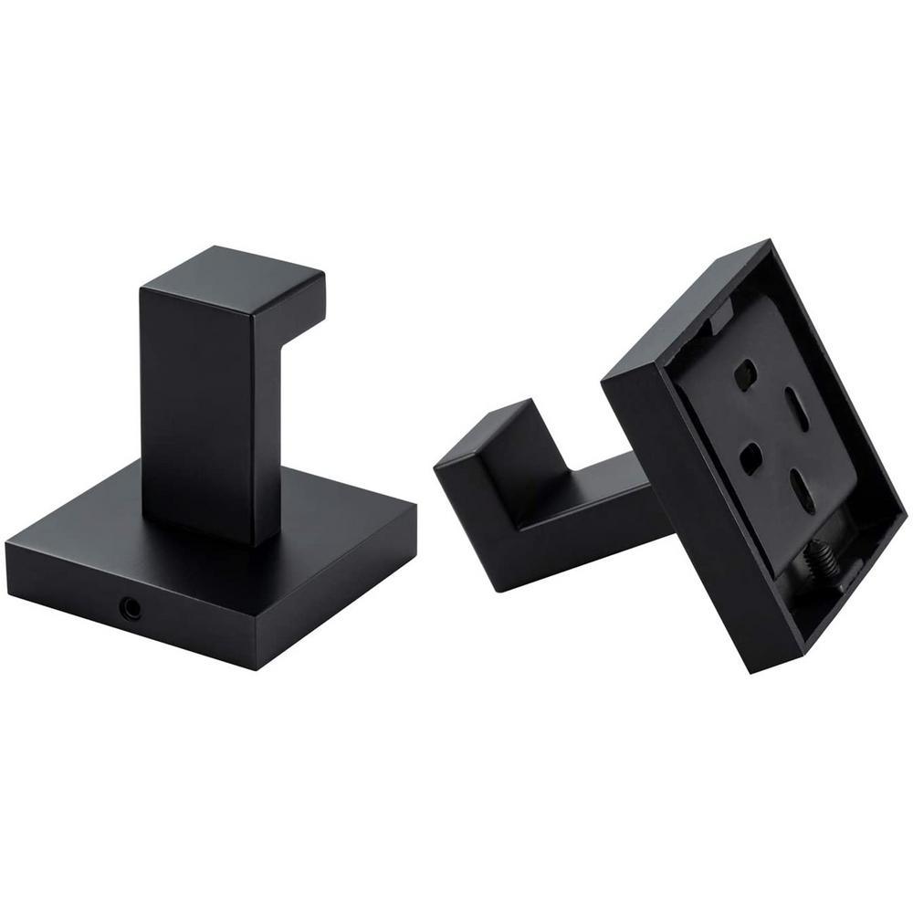 Square Bathroom Robe Hook and Towel Hook in Stainless Steel Matte Black (2-Pack)