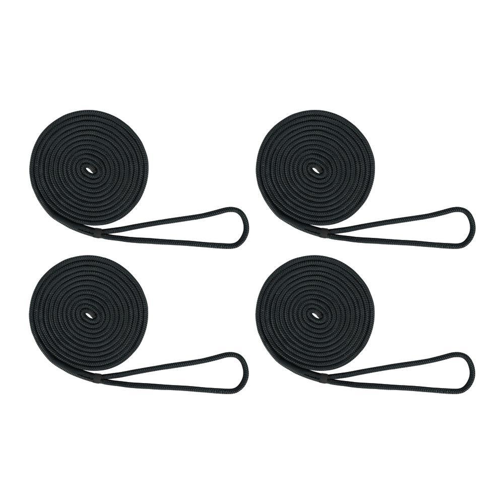 Extreme Max 3/8 in. x 15 ft. BoatTector Double Braid Nylon Dock Line Value in Black (4-Pack)
