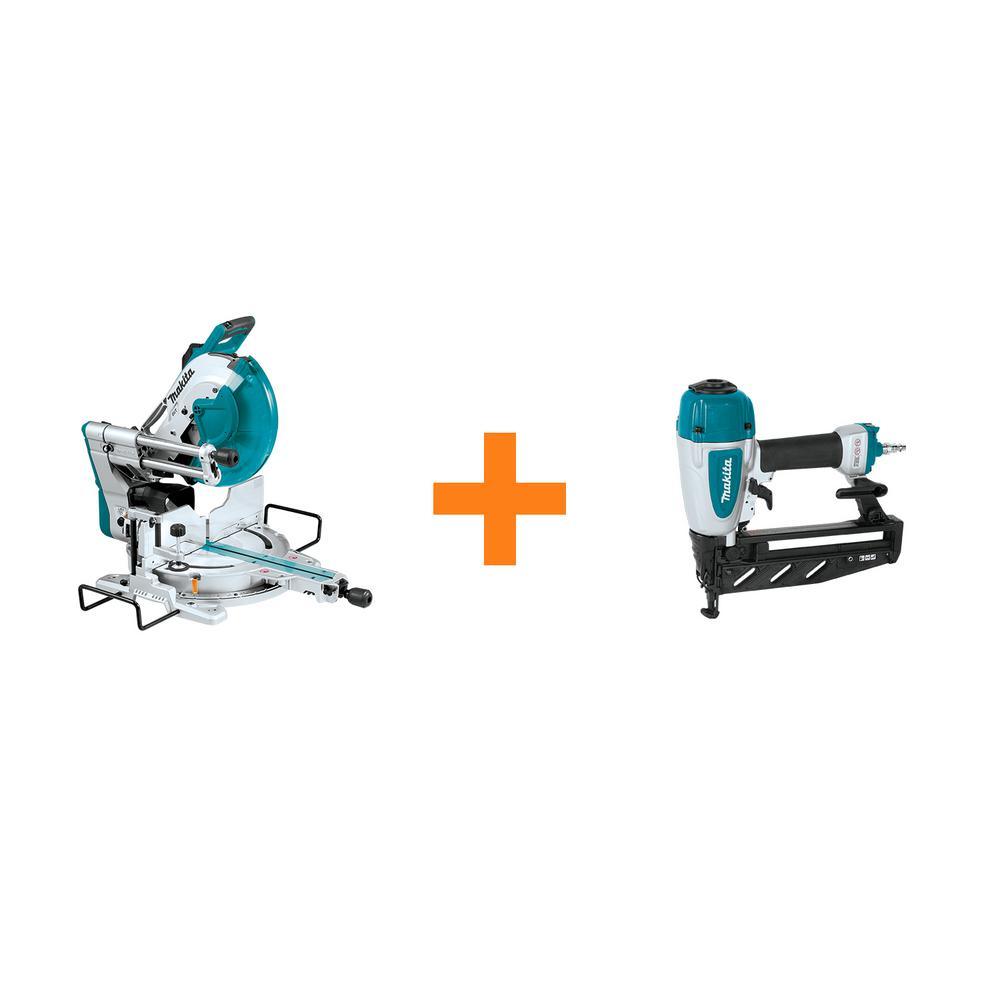 The Makita 12 Dual-Bevel Sliding Compound Miter Saw with Laser (model LS1219L) combines capacity, accuracy and efficient dust extraction in a more compact size, with a unique 2-Steel Rail Sliding System that offers a reduced footprint for operation flush against a wall. The innovative direct-drive gearbox and guard system is engineered for increased vertical cutting capacity of baseboard (6-3/4) and crown molding (8 nested). It will also make 15 crosscuts at 90. The saw miters 0 to 60 left and right, with positive stops at 0, 15, 22.5, 31.6, 45 and 60 (left or right). The bevel lock is located in the front of the saw for easy access and quick adjustments from 0 to 48 (left and right). The saw is powered by a 15 Amp direct drive motor with soft start, a key point of difference. Direct drive enables smoother start-ups and consistent, constant power with no belts to slip or replace. The electric brake provides added convenience. In addition, the electronic speed control maintains constant speed under load for smoother, higher-quality cutting. This Promotion also comes with a bonus AF601 16 Gauge, 2-1/2" Straight Finish Nailer.