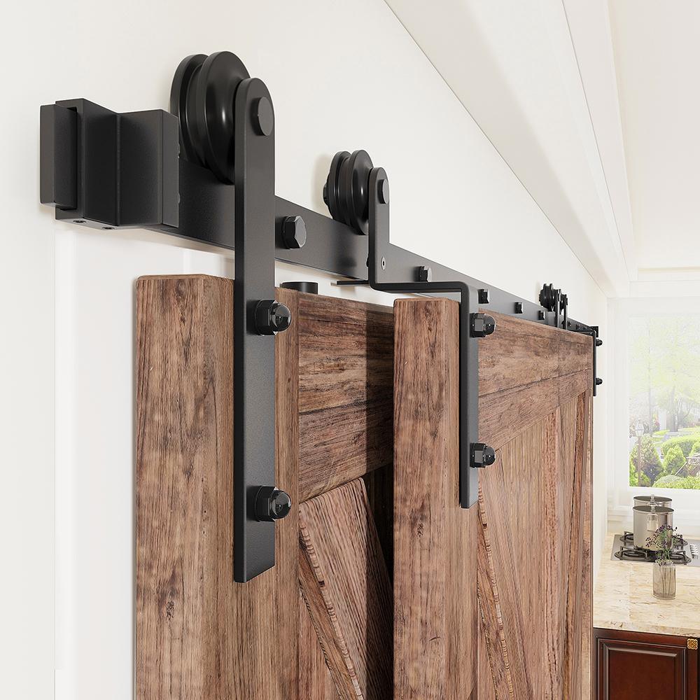 WINSOON is the leading manufacturer of sliding barn door hardware. Craftsmanship, excellence and innovation are our primary pursuits. We enjoy the working with raw materials to make them into something extraordinary. Trustful quality and workmanship is what you can expect when you choose WINSOON. We lead the way in sliding barn door hardware and we invite you to create something unique. Smooth rolling, balanced hangers ensure that all wheels carry weight evenly for the smoothest operation. This 12 ft. single track bypass compared with the previous bypass products, it saves more space and requires less distance from the top of the door to the ceiling. At least 6 in. of space can be installed in your home. Because the wheels are staggered, this will result in an overlap size of about 8 in. - 12 in. If you are installing two 72 in. doors, then your door opening length should be perfect at 132 in.