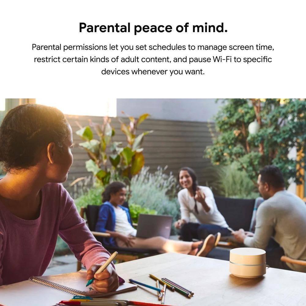 • Parental peace of mind. Parental permissions let you set schedules to manage screen time, restrict certain kinds of adult content, and pause Wi-Fi to specific devices whenever you want.