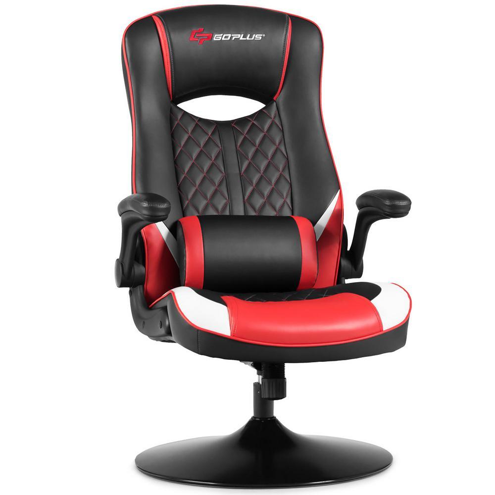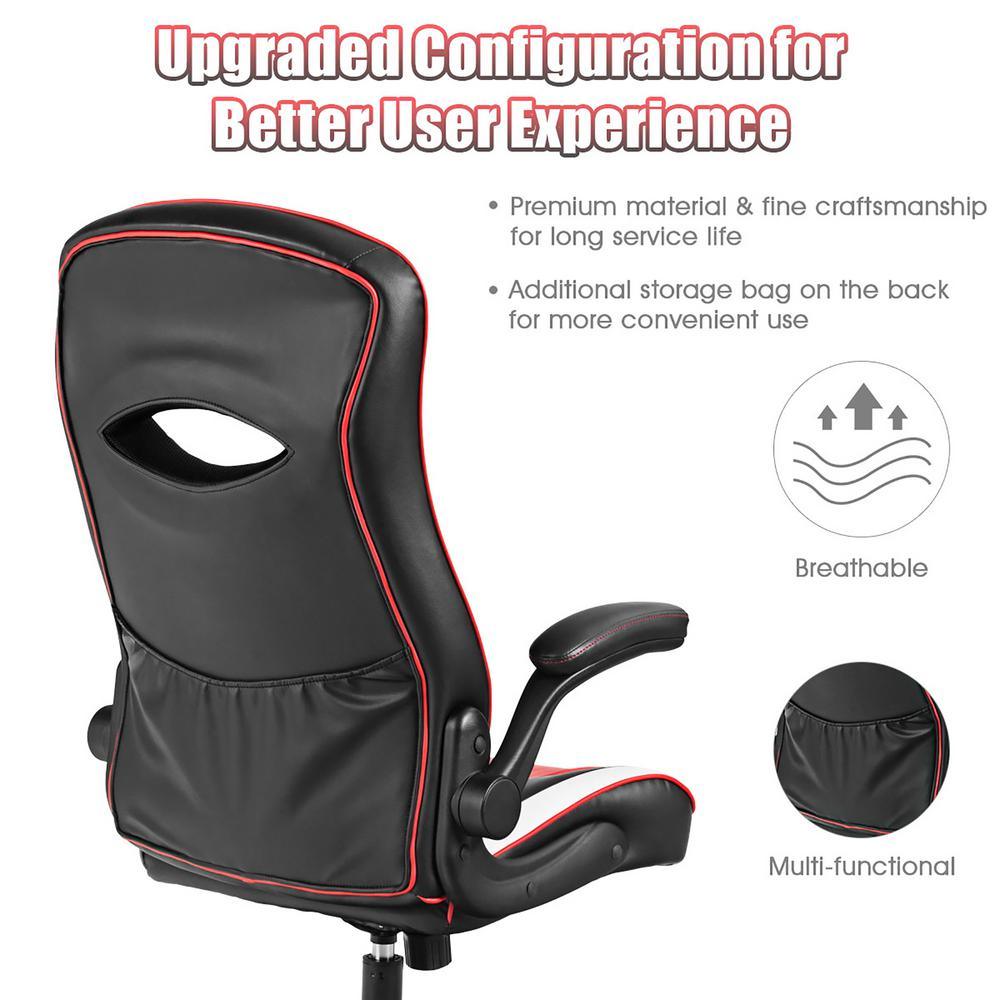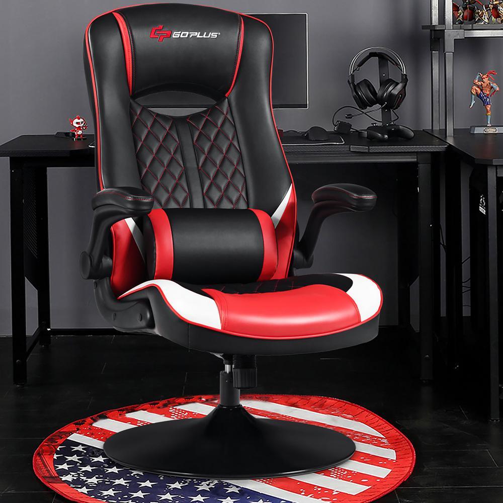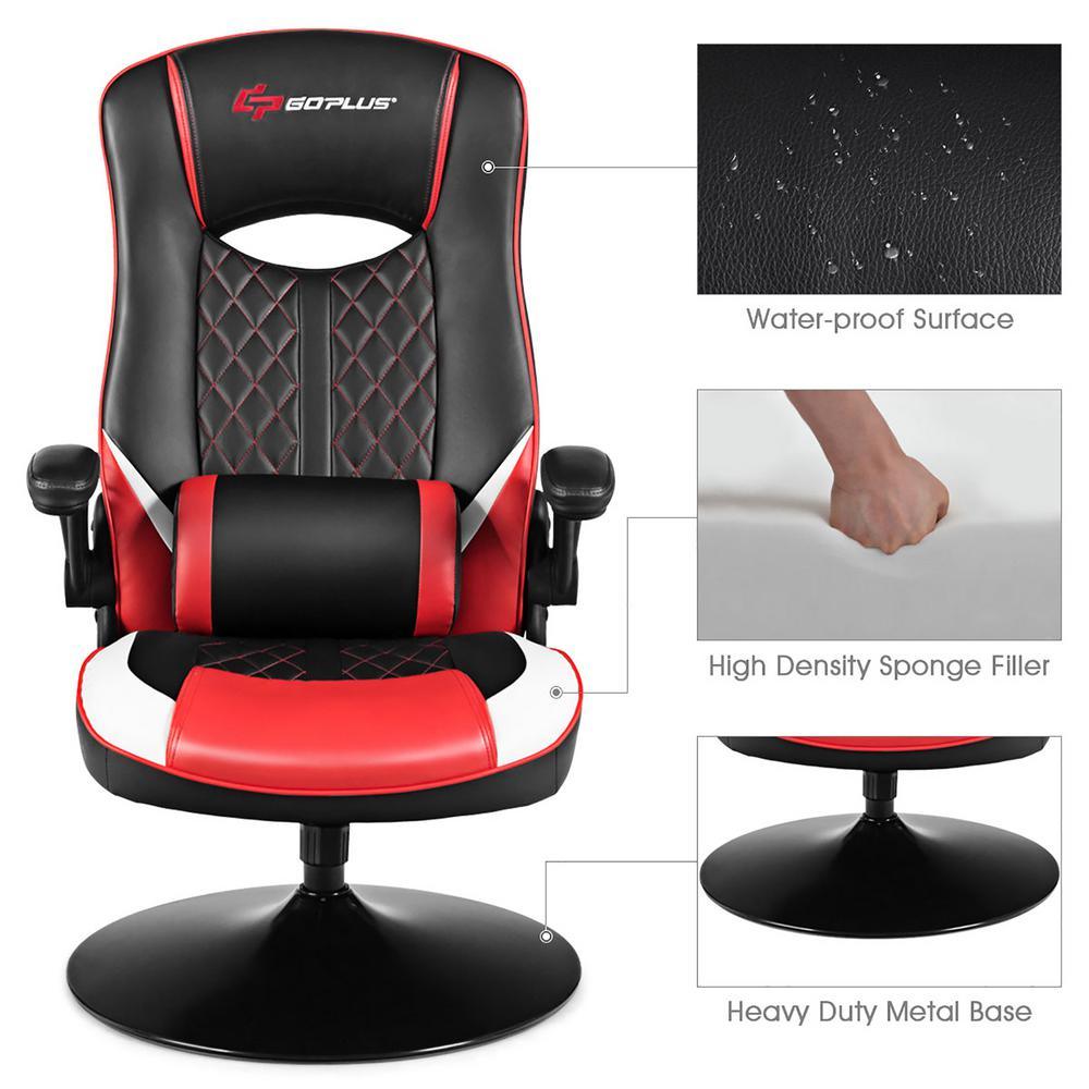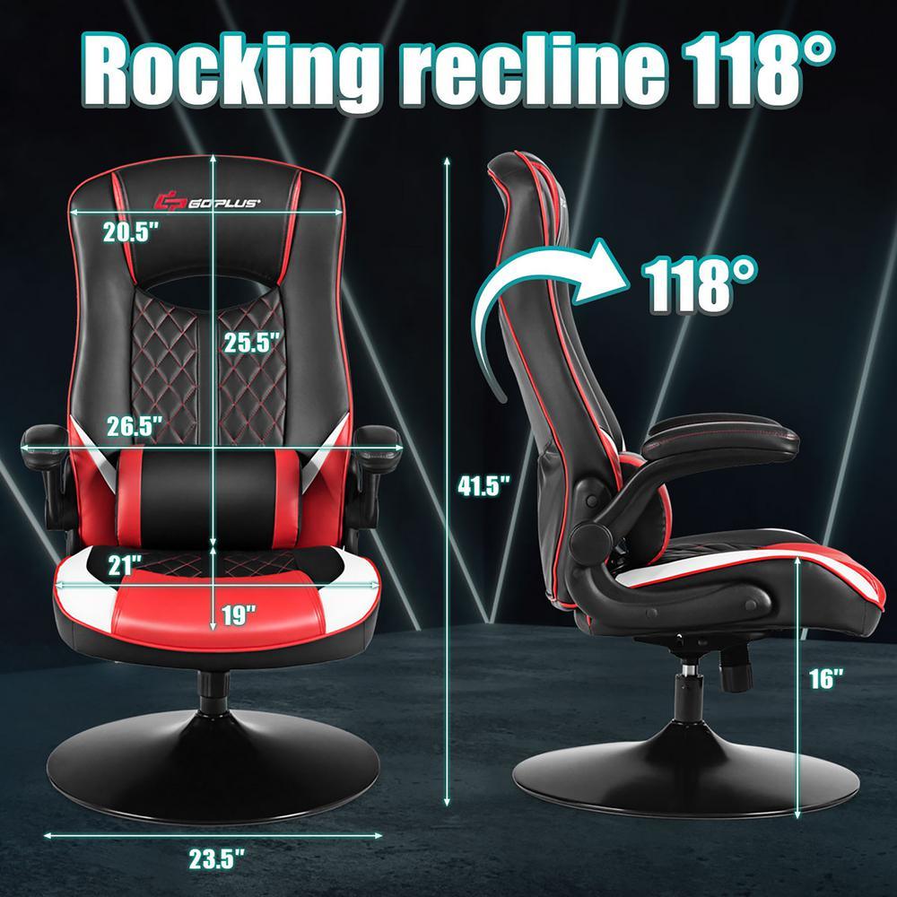 Red PVC Rocking Gaming Chair Rocker Racing Style Computer Office Chair 360° Swivel