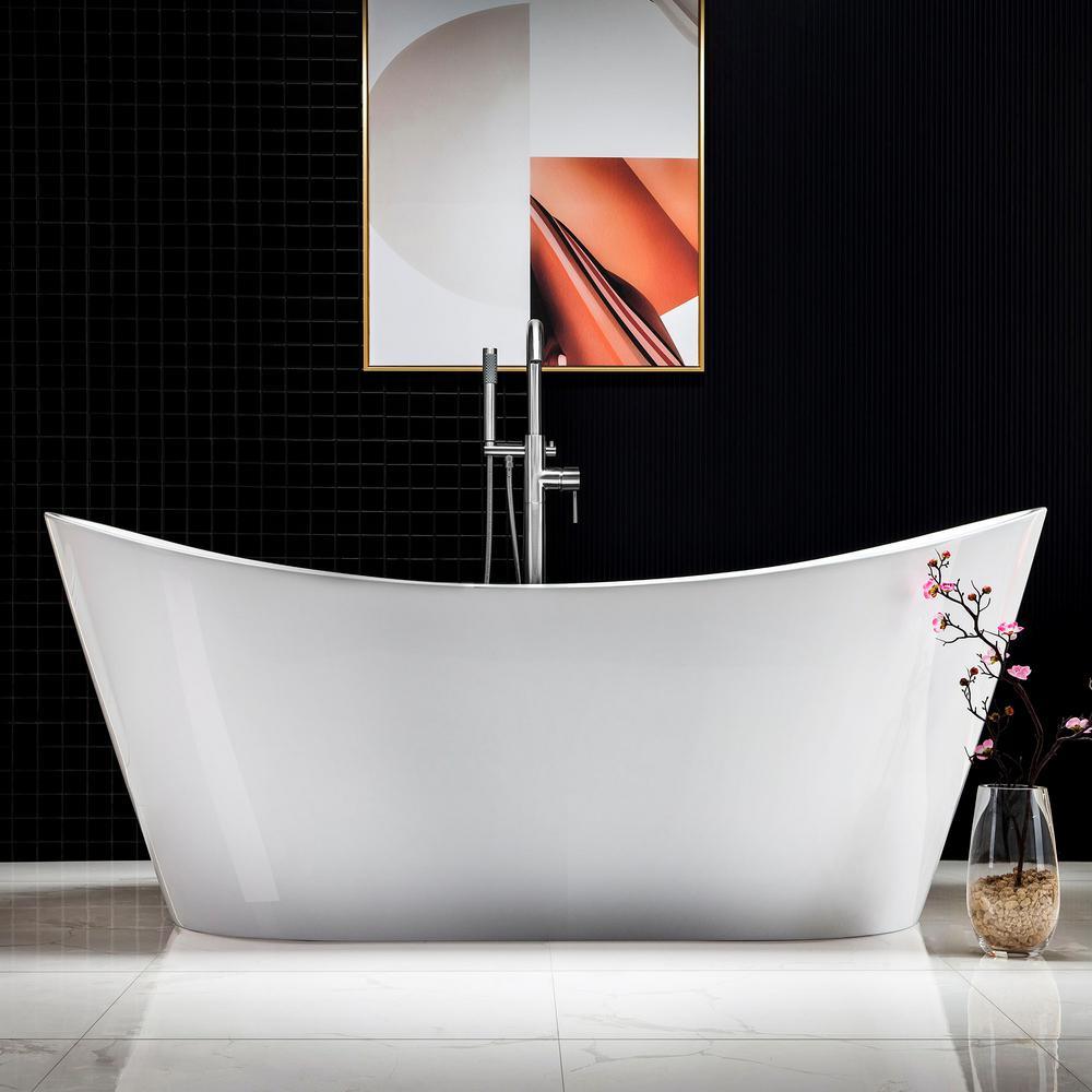 Salou 71 in. Acrylic Freestanding Double Slipper Flat Bottom Bathtub with Chrome Drain and Overflow Included in White