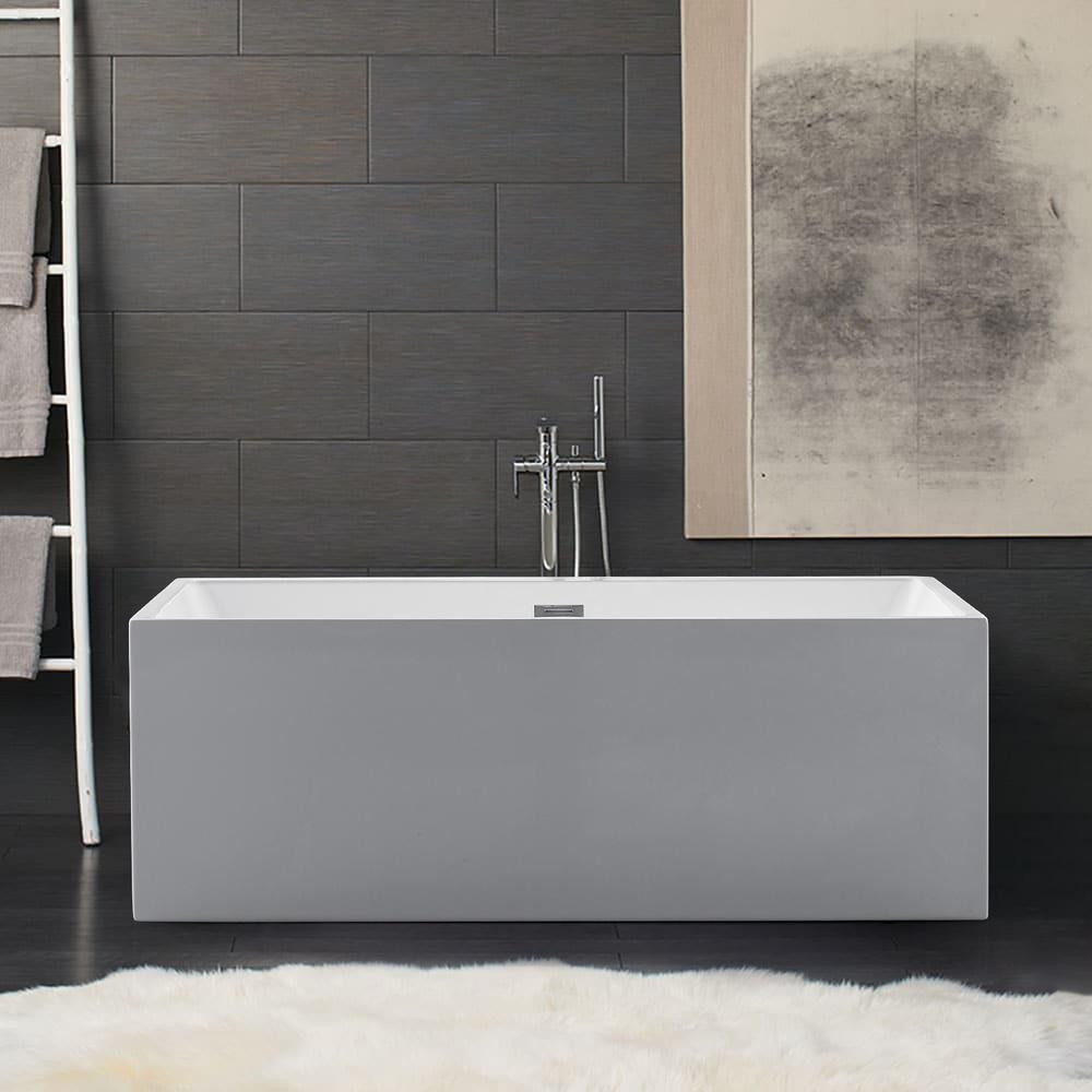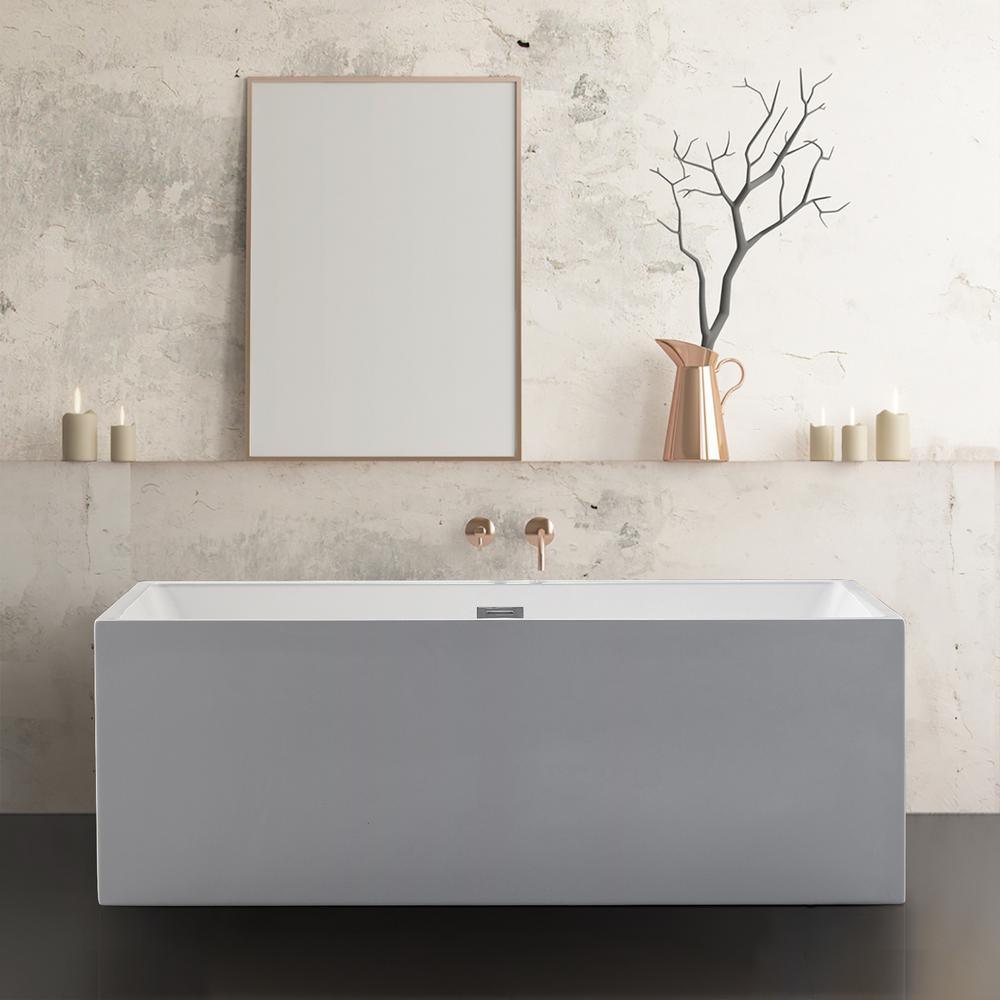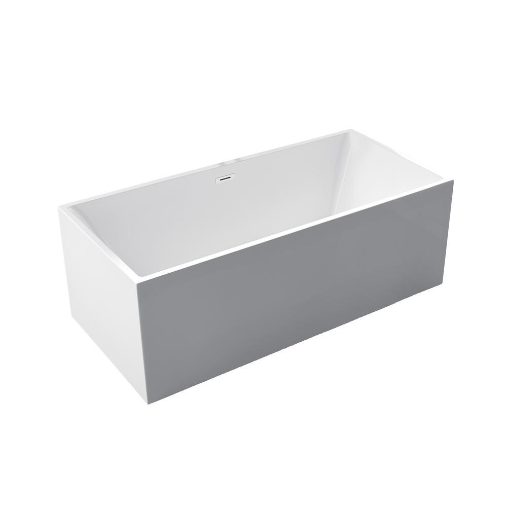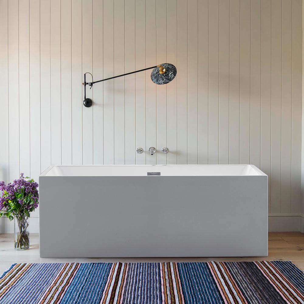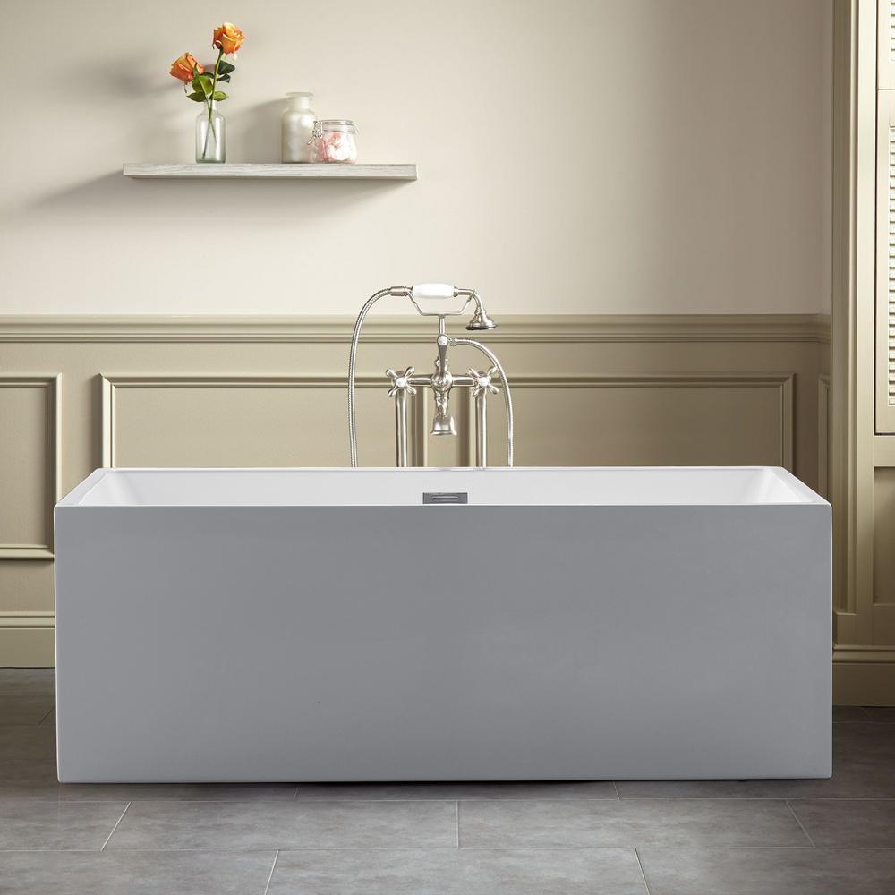 Rectangle 67 in. x 32 in. x 24 in. Contemporary Soaking Acrylic Flatbottom Freestanding Bathtub with Overflow, White