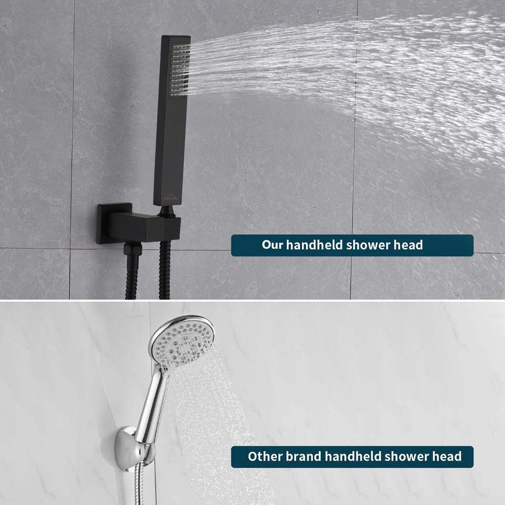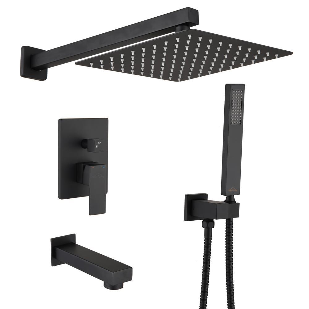 Shower System Wall Mounted with 12 in. Square Rainfall Shower head and Handheld Shower Head Set, Matte Black