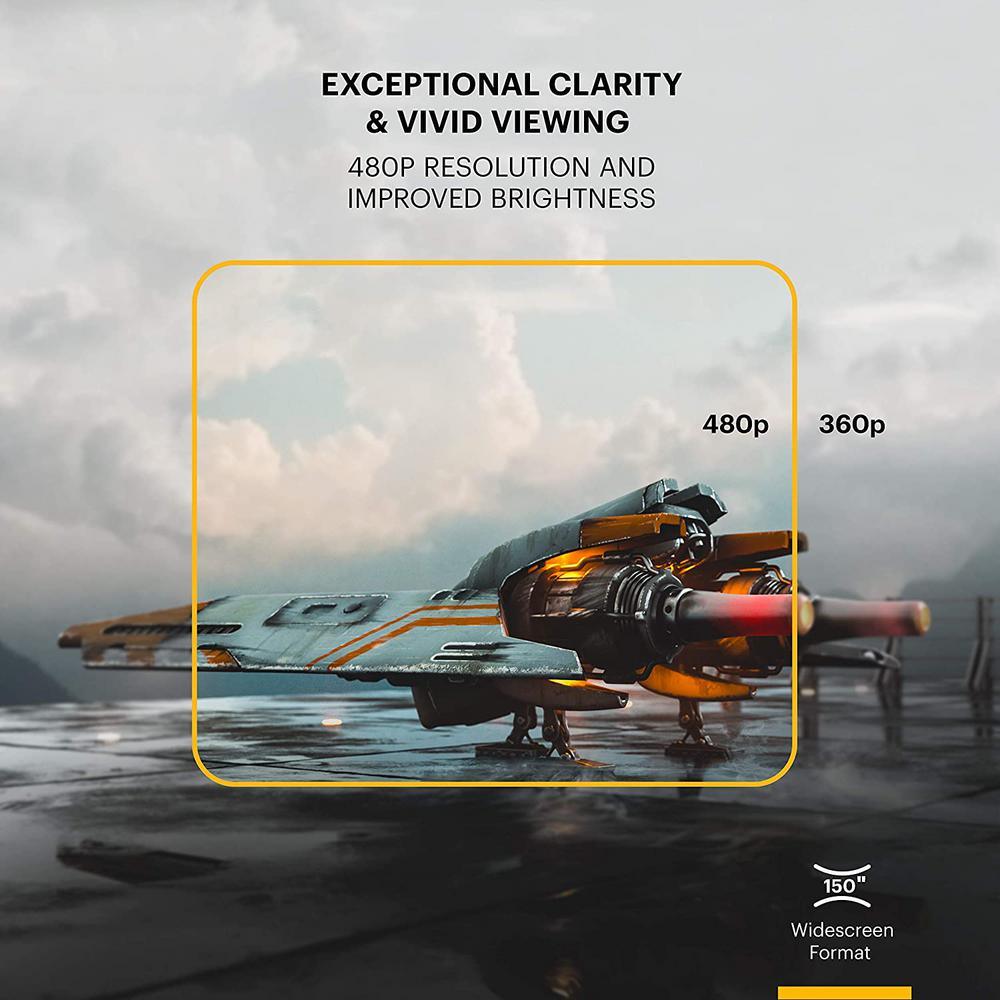 - Spectacular big screen performance, mini home projector is slightly larger than similar compact projectors, delivering stunningly sharp images and true-to-life colors with 800x480p native resolution [full 1080p HD support], 2500:1 contrast and 16:9 aspect ratio, view all your favorite media indoors, outdoors-anywhere