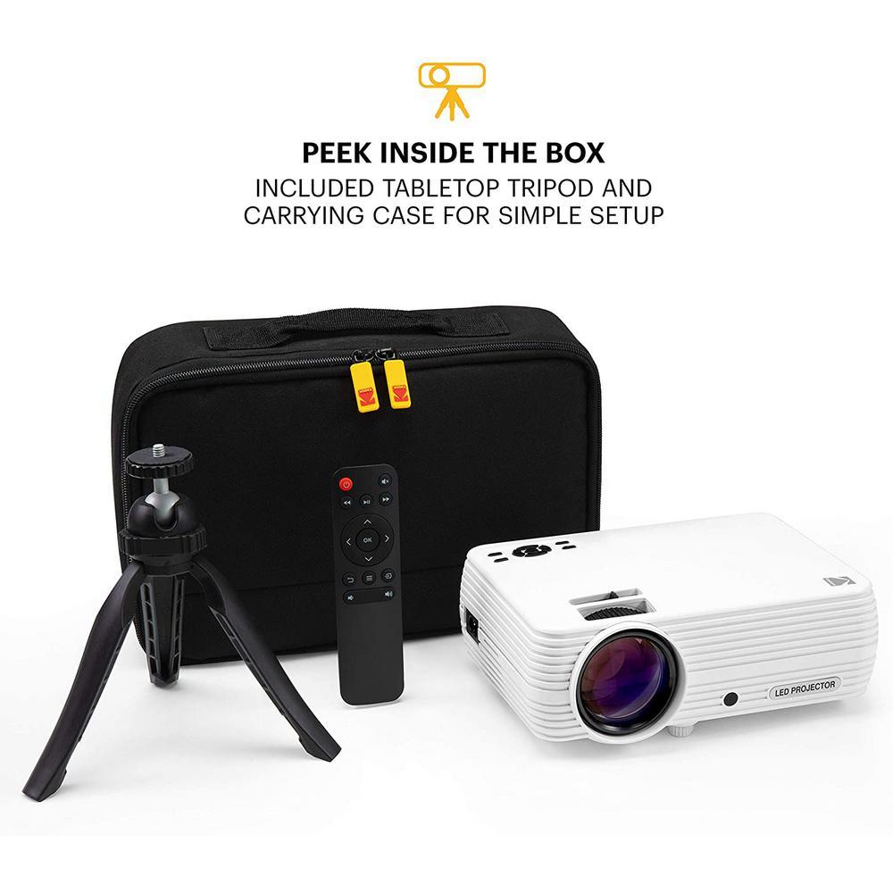 - Bring the big screen to go, travel-friendly design fits an entire home theater system in 1 convenient device, set includes power cable, av cable, tripod, case and bonus wireless remote control, perfect for family game night, backyard movies, sharing photos, camping trips, playing PS3, PS4, XBOX ONE, WII and so much more