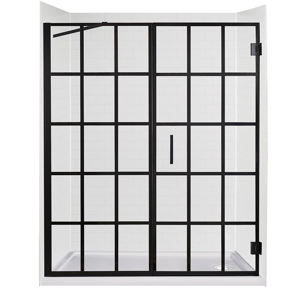 Update your bathroom with the Jetcoat Shower Wall Kit, complete with White Subway 5-piece shower walls and a white 60 in. x 32 in. shower base and Marina Gridiron shower door in Matte Black. Easy to install, the Jetcoat Shower Wall System is a Grout-Free Solution that can be installed over waterproof backer board or existing tile. It only takes a few hours to measure, cut and adhere to the wall, which makes this a perfect DIY project for most. The Marina doors are constructed with 3/8 in. thick glass and an industrial trend window pane look. H2OFF Clean Glass Technology is applied to the inside surface of the glass, providing a water repellant and stain resistant coating for superior protection and easy maintenance. Shower bases are made of high gloss white acrylic, making them easy to clean and resistant to scratches and stains. The low, easy to step over threshold base comes standard with a slip resistant floor. Shower bases are easy to install and when paired with the beautiful Jetcoat Wall System, you will never find an easier or more affordable way to give your bath the stylish and dramatic makeover you've been dreaming of.