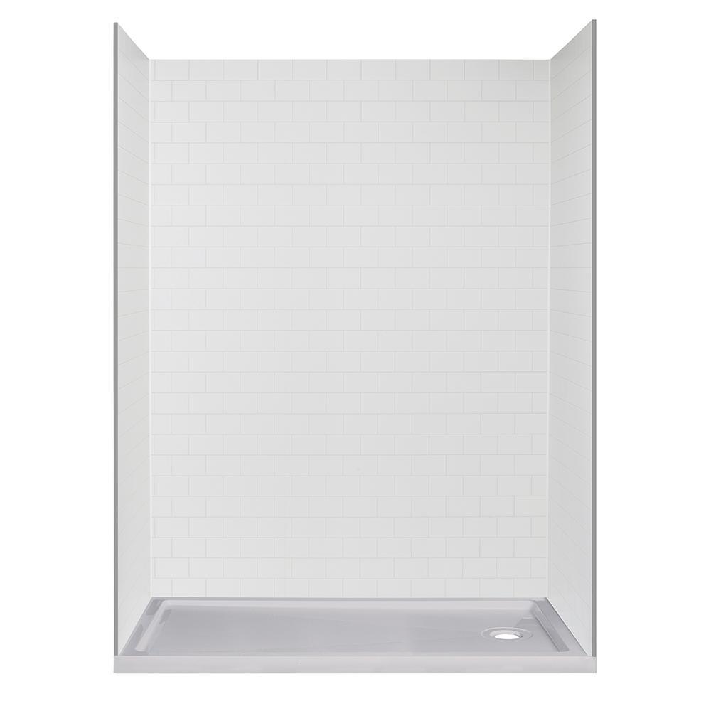 • Shower wall kit includes 2-side panels measuring 32 in. W x 78 in. H and 3-back panels with finished measurements of 60 in. W x 78 in. H