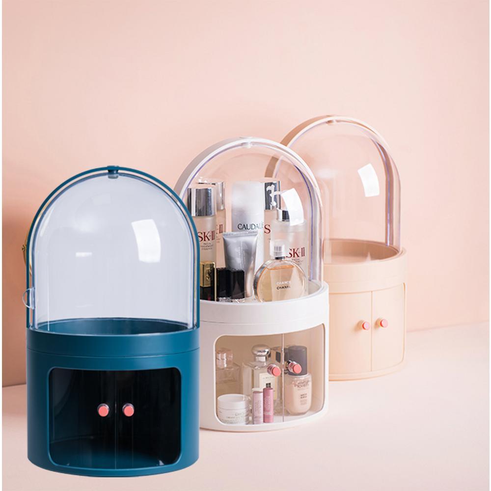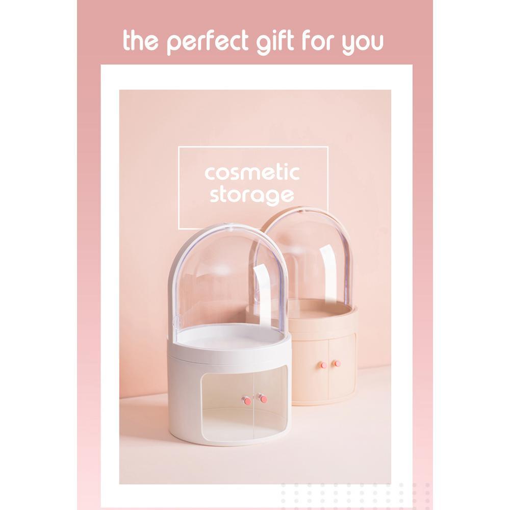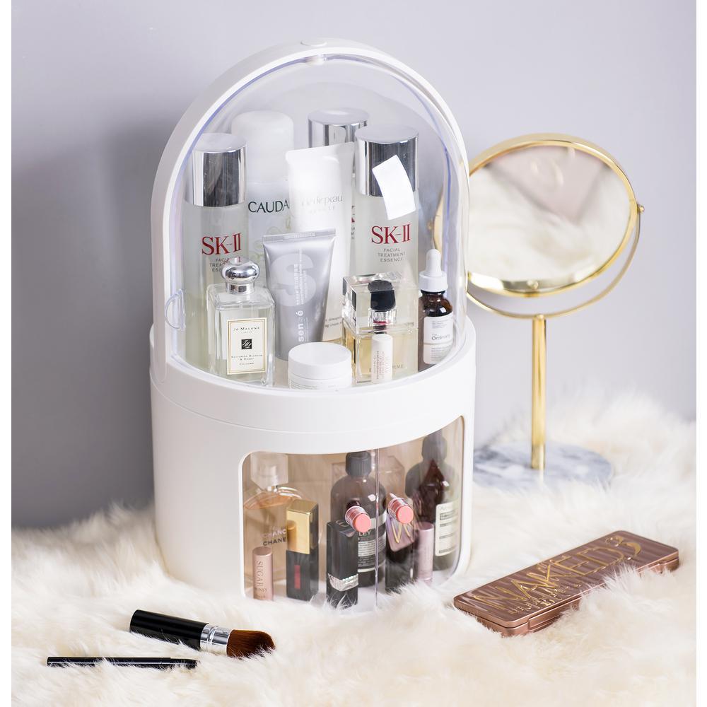 CozyBlock High Dome Makeup Container, Dustproof Makeup Organizer Multi-Level Cosmetic Organizer,Skincare Holder in White