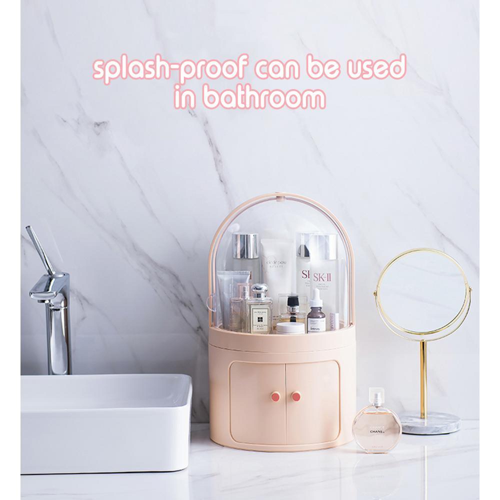 Tired of organizing your messy vanity table top or have a hard time finding your cosmetics and skincare products when needed Sick of dusting your makeup and cosmetic bottles The CozyBlock High Dome Makeup Organizer and Storage with Dustproof Doors is your perfect solution Features: Elegant design cosmetic storage box helps you organize all your makeup in place. High dome design provides ample spaces for all of your tall tubes and bottles, whereas the lower compartment can be used for smaller items. The spacious compartments allow you to stuff everything inside. The clear dome sliding doors open up neatly to give you that treasure closet opening feel, and it showcase your collections splendidly. The storage container is encapsulated, to keep your cosmetics free from dust; no more dusting every week, simply wipe down the container with clean cloth and done. Can be used in bedroom, bathroom, dressing room, countertop, desktop, or anywhere organizing is necessary. Made with durable ABS material.