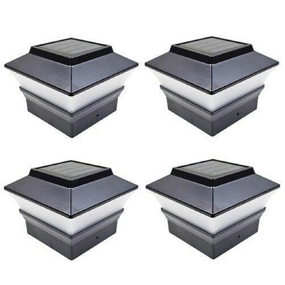 Solar 4 in. x 4 in. Black Vinyl Outdoor Post Cap Deck Lights (2-Pack). Will fit within 3-7/8 in. square post. Automatic on/off sensor.