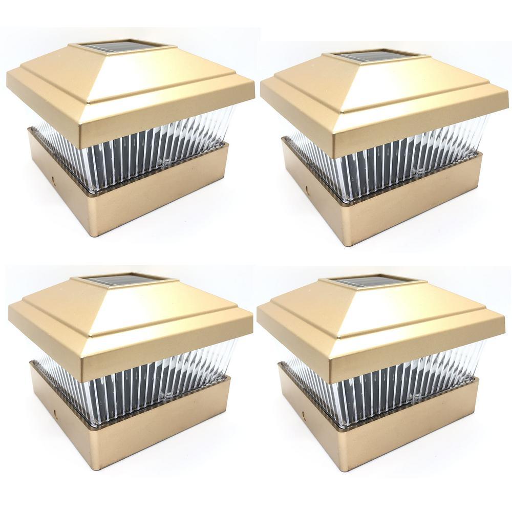 Relightable Solar 5 in. x 5 in. Gold Vinyl Outdoor Post Cap Deck Lights (4-Pack)