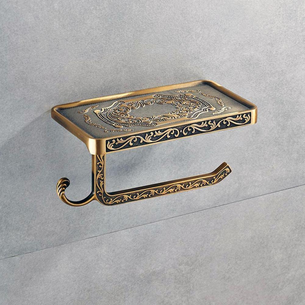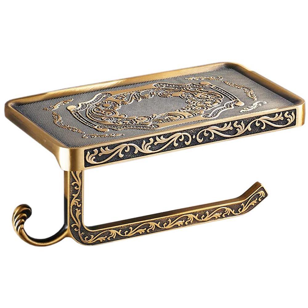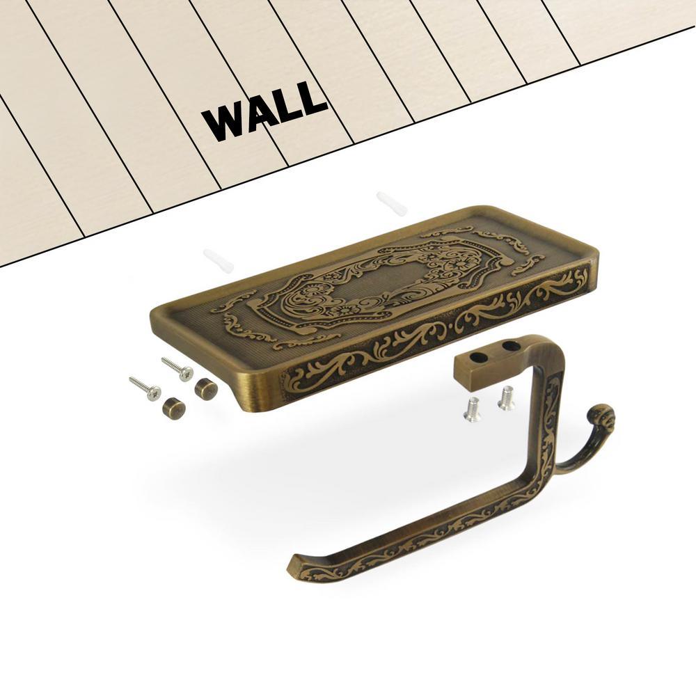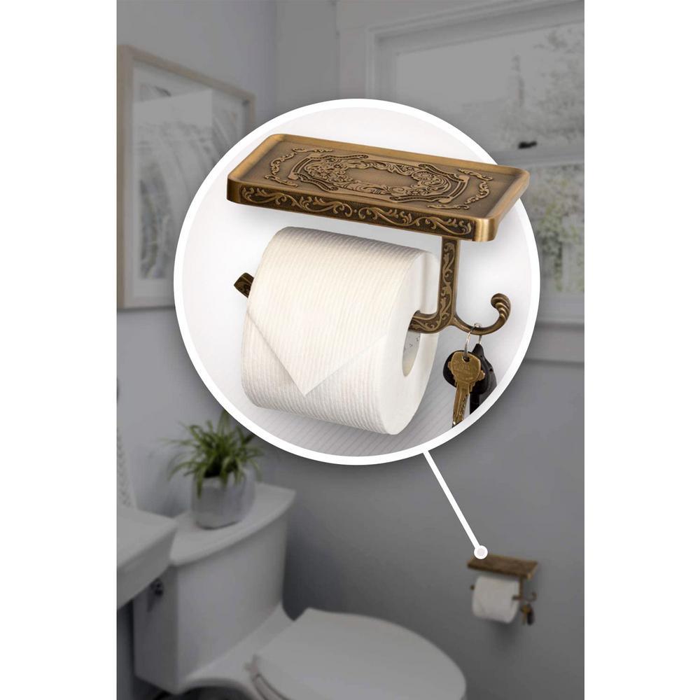 Reversible Bathroom Toilet Paper Holder with Phone Shelf and Hook, Vintage Decor Style (Bronze).The problem with most phone shelves is that the toilet paper holder can only be installed in one direction. We created a unique design that is reversible, which allows you the freedom to install it anywhere you like.Most competing products have a limited capacity for the size of toilet paper roll it can hold. Our design accommodates larger rolls which keep the paper from rubbing on the wall.