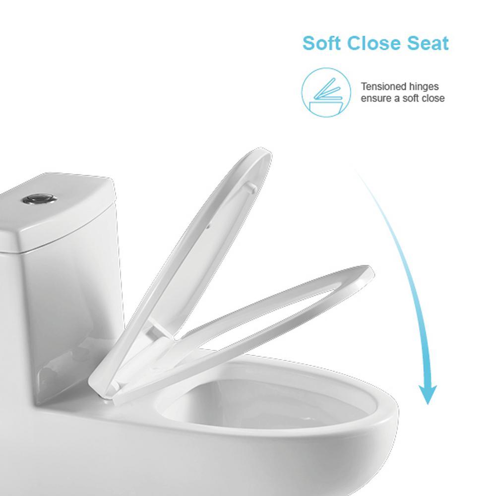 - Elongated-front bowl is positioned at a convenient height, easy-release seat, both disabled persons and elders can stand or sit on it without exerting too much pressure on their knees or back comfortable and easy to use, perfect match with every modern bathroom style