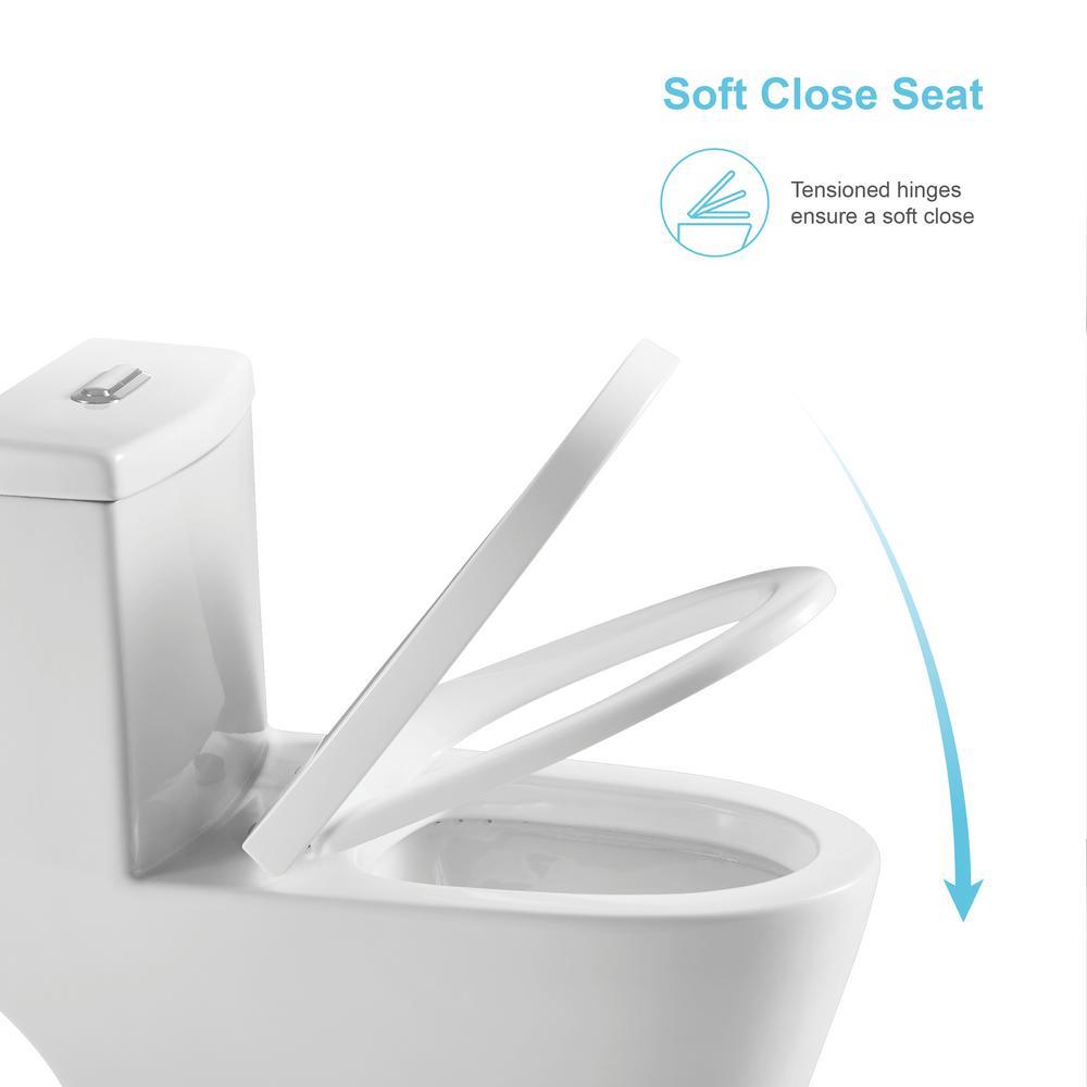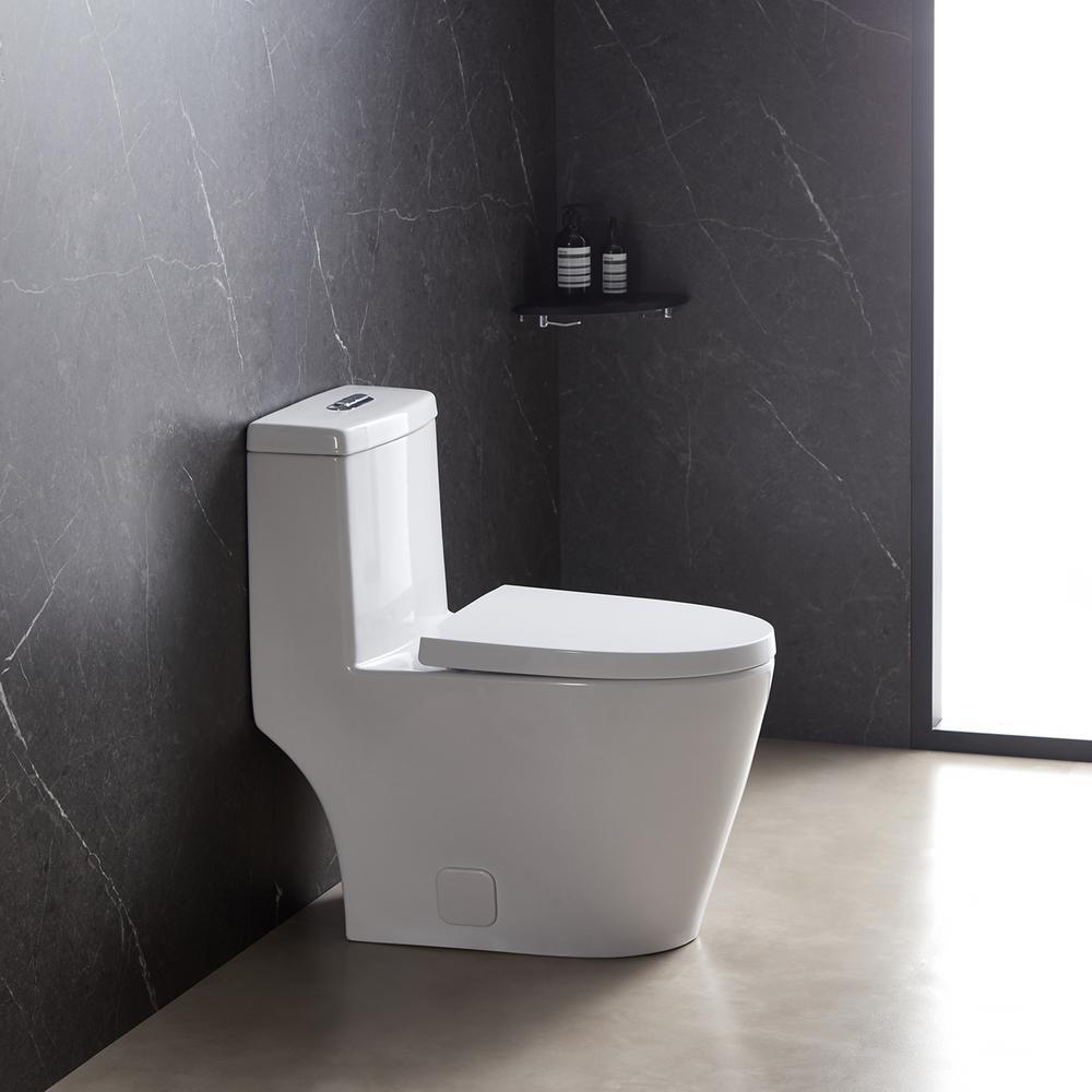 - White one-piece toilet is made of high-end ceramic that resistant to scratches and stains, nice glazed surface inhibits the growth of stain and odor-causing mold, and mildew on the surface, also it will not fade over time, integrate the tank and bowl into a seamless, no corners and grooves, easy-to-clean and avoid water overflow