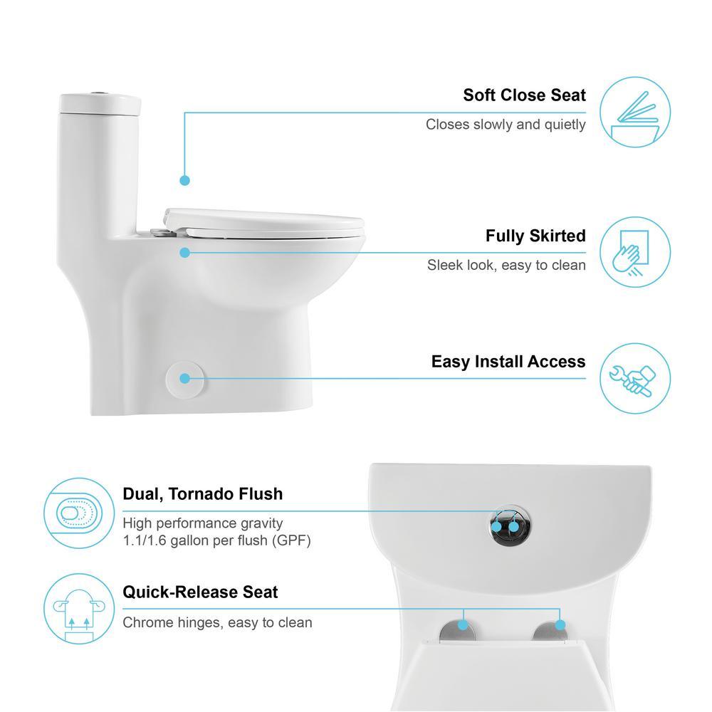 1-Piece 1.1 GPF /1.6 GPF Dual Flush High Efficiency Elongated Toilet in White Seat Included