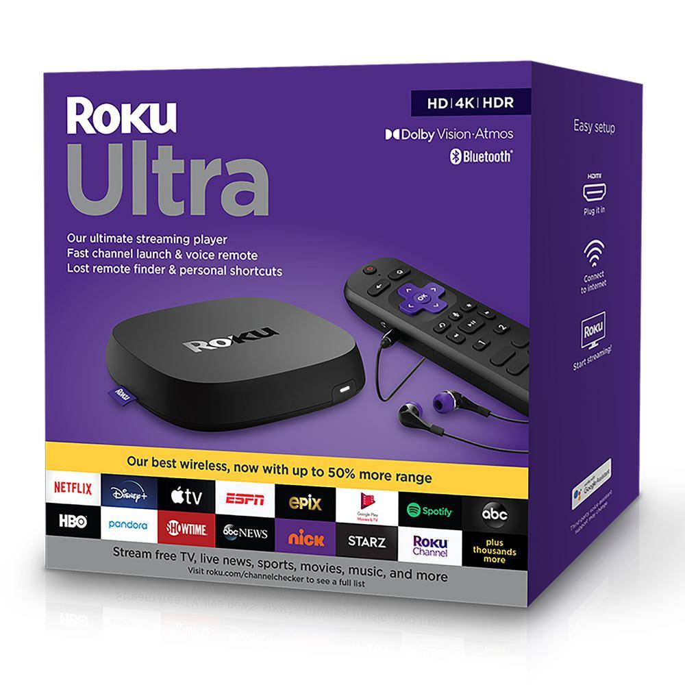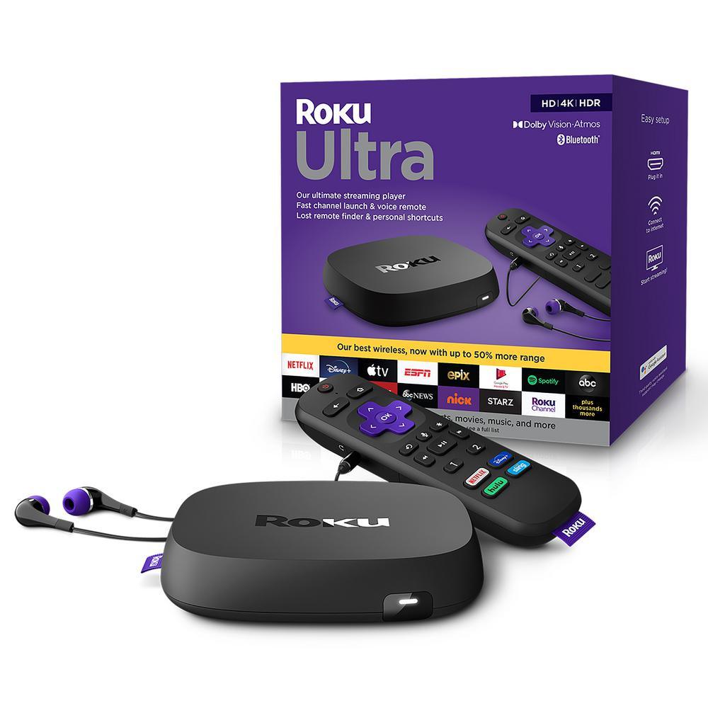 Roku Ultra is the ultimate streaming player, fully loaded with all of our best features. Enjoy powerful, smooth streaming with channels that launch in a snap and our best wireless, now with up to 50% more range. Stream in extraordinary Dolby Vision HDR picture and experience 3D Dolby Atmos sound when you pair it with a compatible sound system. Stream the newest and most popular channels, plus cast music, photos and more with Bluetooth. The included voice remote has controls for your TV, personal shortcuts and headphones for private listening-it even has a lost remote finder. Roku Ultra is perfect for cord cutters and people who love to stream.