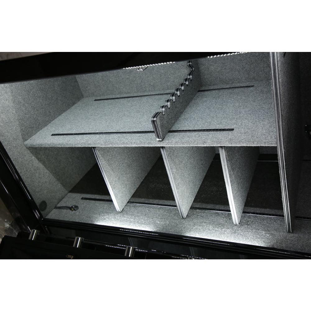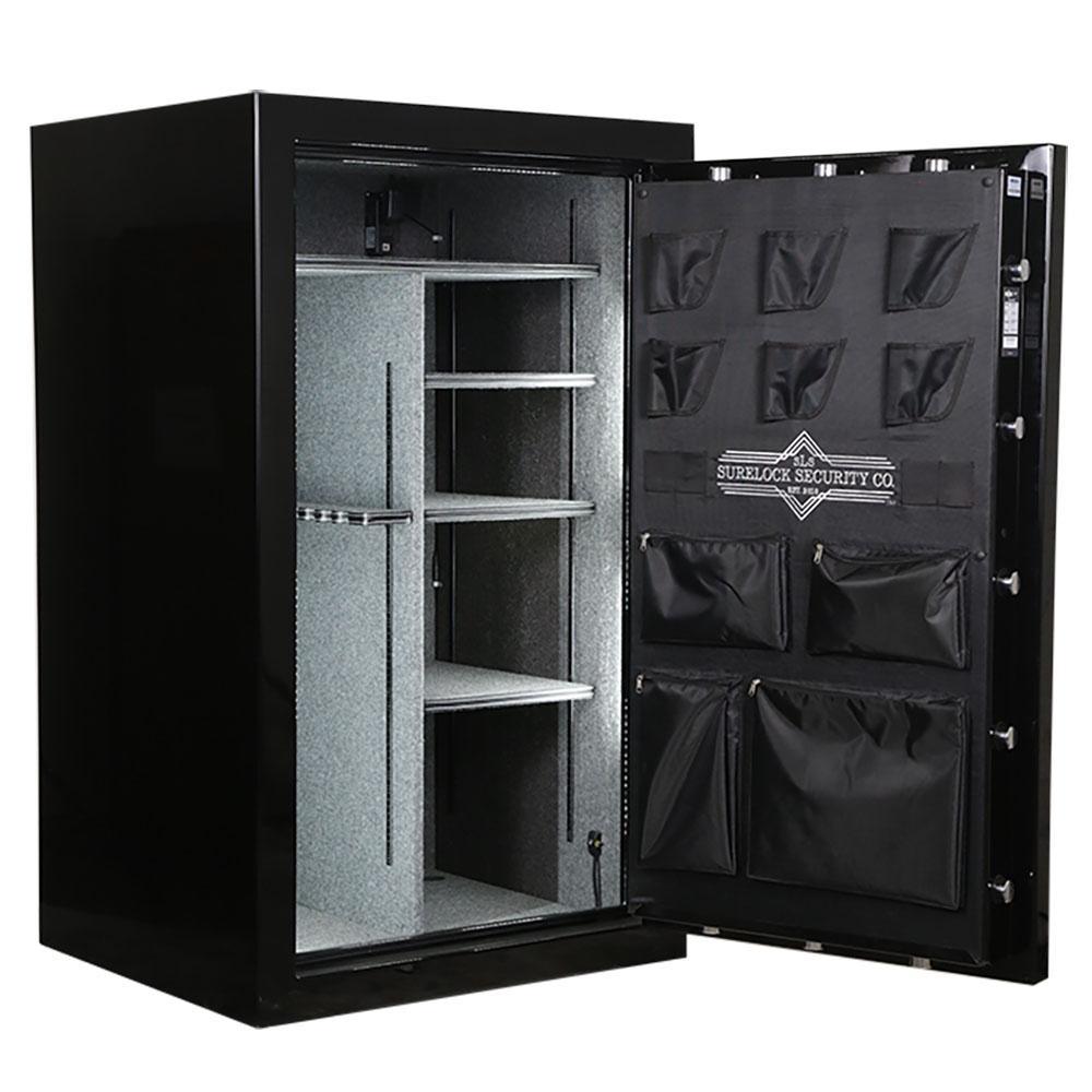 The Gen II General 35 boasts an adjustable interior with 2-gun racks and 4-shelves - that can either be adjusted or removed for additional storage space. Tall, thick and large the General 35 can hold up to 34-36 long guns, allowing you to store pretty much anything and everything (within reason of course). and with a 90-minute fire rating (at 1400°F) and a Palusol fire seal, the General Series provides excellent protection should a fire ever occur. While the S and G lock and 16 active, 1.5 in. steel bolts make sure that only the people you want in your safe - can get into your safe. Finished in a sharp gloss black with gray interior and leather trimming, the striking contrast completes the General 35 while the upgraded interior organizational door panel, with padded pistol pockets, provides even more storage space for smaller items like keys and jewelry, as well as smaller handheld firearms. Designed with the utmost integrity to provide the security and protection you've been searching for, the General 35 was crafted for those value their firearm collection (and other valuables), as much as the safety of those around them. Backed by SURELOCK Security's Lifetime Replacement Program - the General Series Gun and Home Safe offers reliable protection that safely secures all your firearms and belongings.