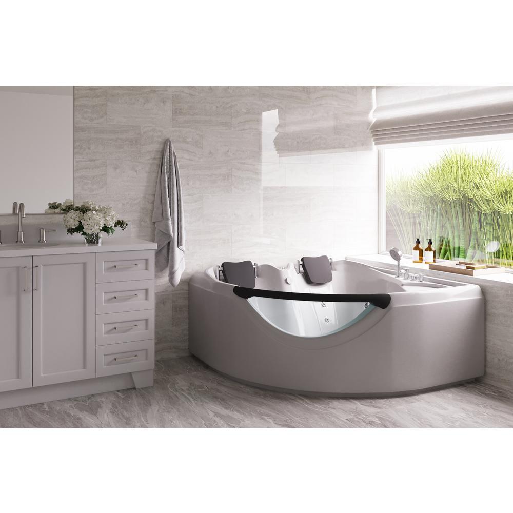 60 in. Center Drain Corner Alcove Whirlpool Bathtub in White
