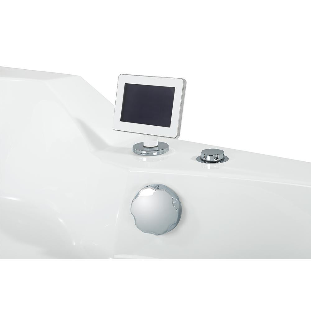The Ariel HW123 whirlpool bathtub will add luxury and offer the ultimate in relaxation for enjoyment in your home bathroom. This spa holds up to 92 Gal. Of water and includes 2 headrests to accommodate 2 people in the unit. The acrylic and fiber glass construction is easy to clean and has a long life. 14 jet system is controlled via the computer control panel. The audio function is controlled with the use of the computer control panel. The solid brass tub filler and the 5 mm tempered glass panel on the front of the unit add unique accents to this whirlpool bathtub model. Indulge in the elegance and relaxation available to you with the Ariel HW123 whirlpool bathtub. Controls the water temperature display, water pump, air blower, heat pump FM/Bluetooth, LED underwater light, color and brightness adjustable. 2 removable cushioned pillows.