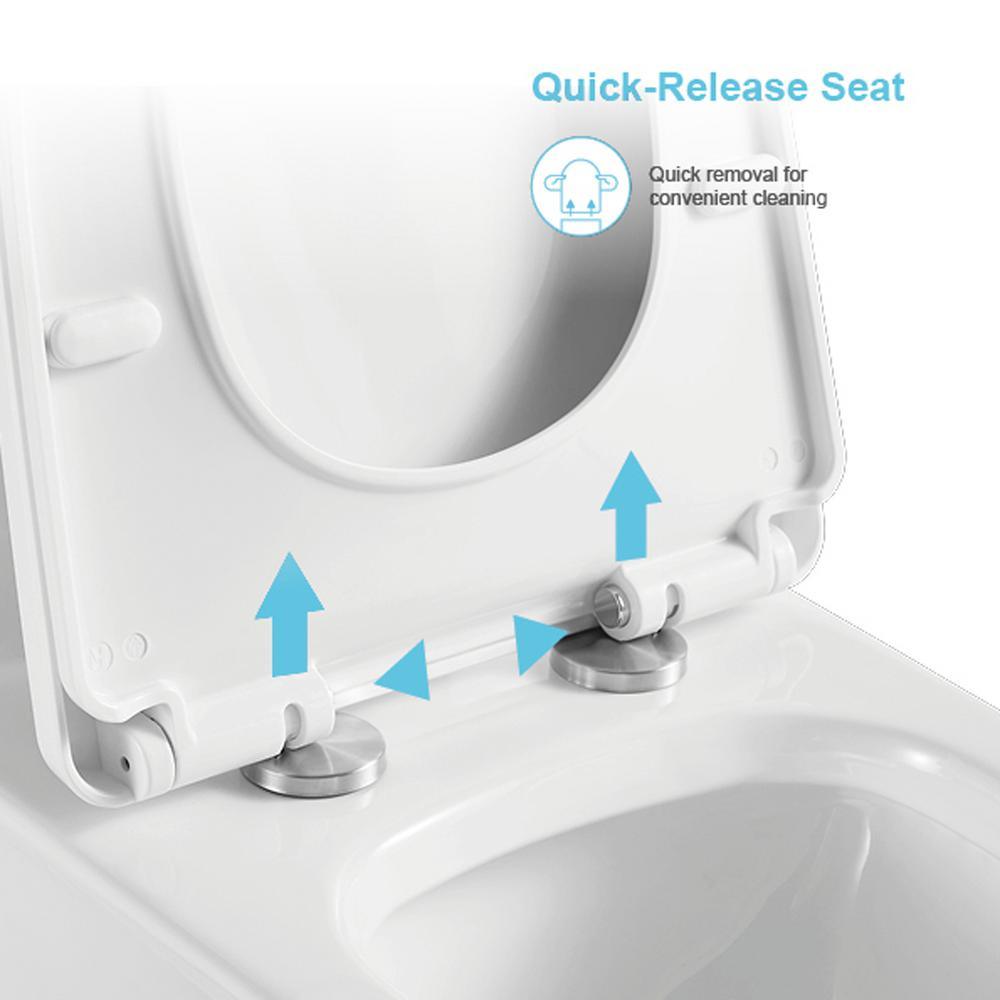 Tensioned hinges ensure a soft close. Quick removal for convenient cleaning. Scrubs the bowl clean with every flush.