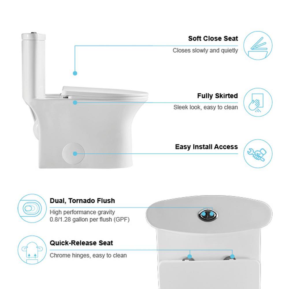 12 in. Rough-In 1-piece 1.1/ 1.6 GPF Dual Flush Elongated Siphonic Jet Toilet in White, Seat Included