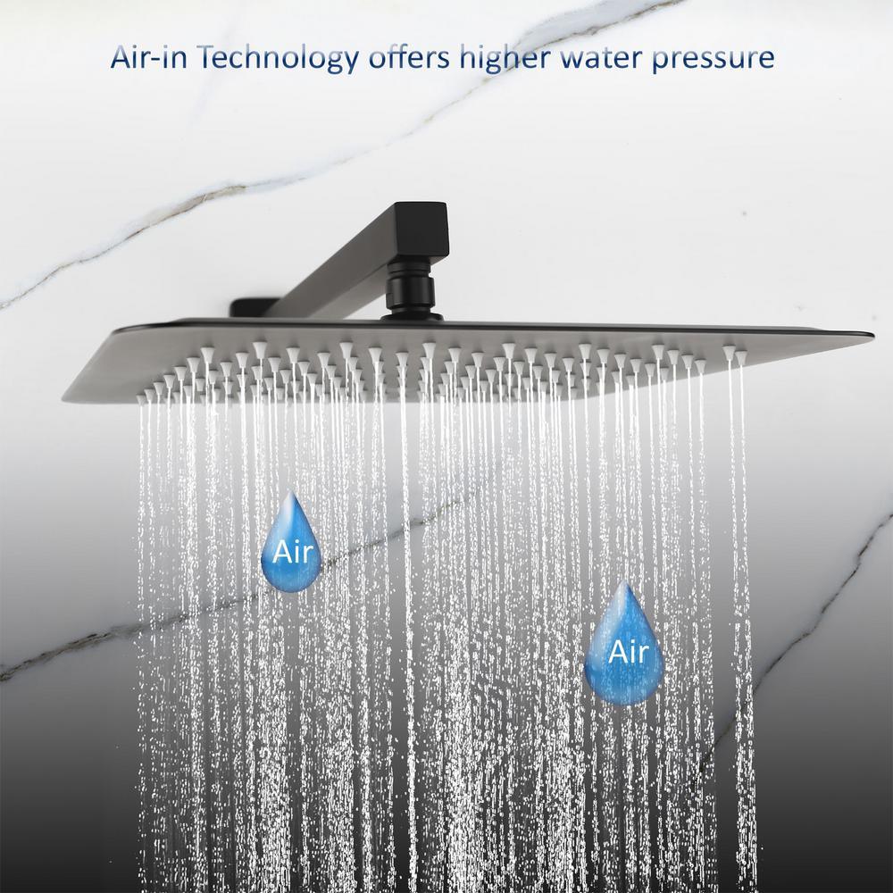 • Air-in Technology with High Water Pressure -- Even at low water flow, the use of ultra-thin and air-in technology offers high water pressure. The smooth and powerful shower water helps you start your day off right.